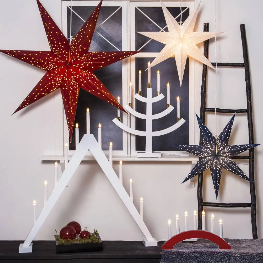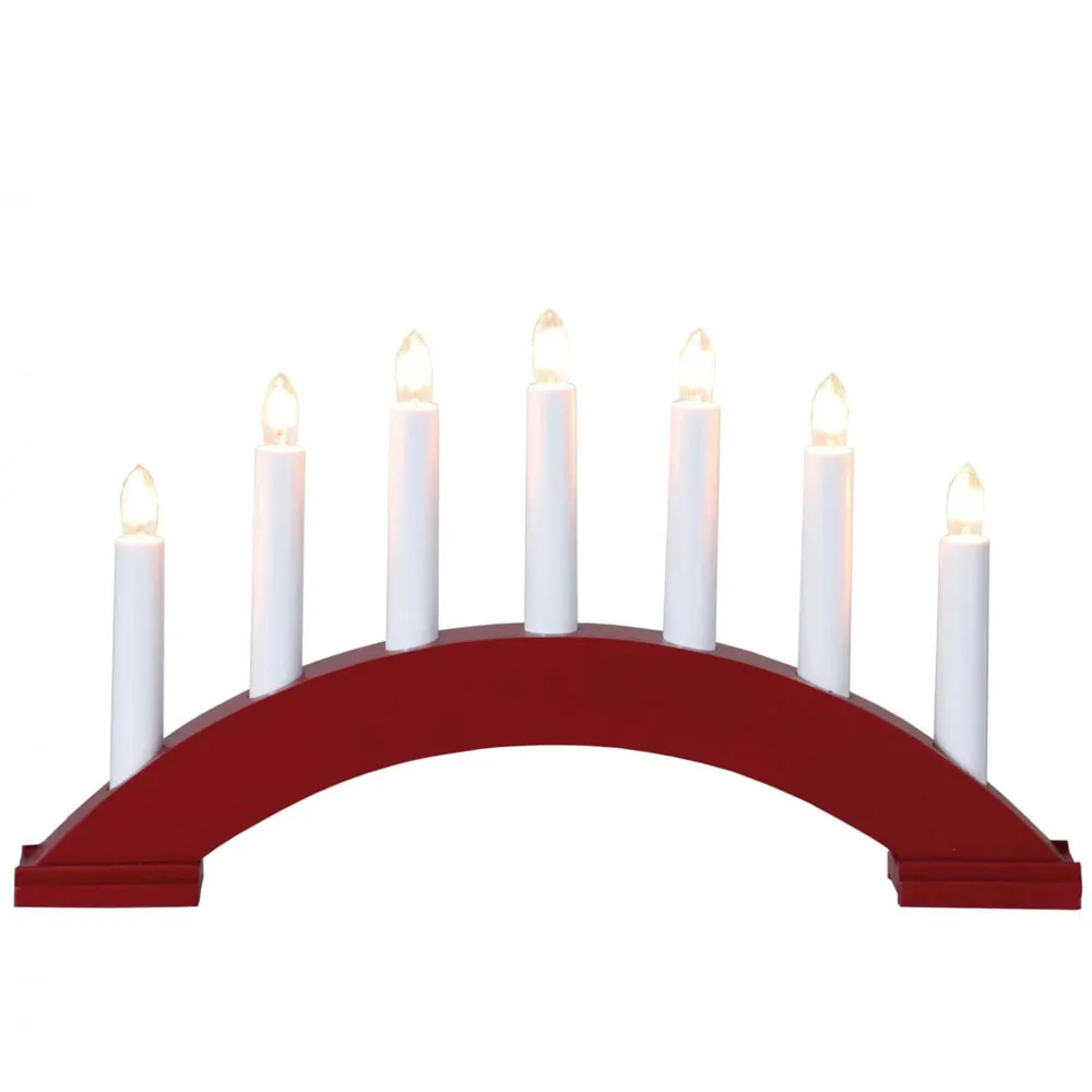 Новогодняя горка «ВЕА» 7 свечек используется как новогоднее украшение на окно, каминную полку, журнальный столик, комод и так далее. Рождественский семисвечник изготовлен из дерева, корпус полукруглой формы красного цвета, выполнен в скандинавском стиле.В комплект входят лампочки (3W, 34V), патрон E10. Новогодняя горка на окно подключается к электросети макс.230V. К корпусу подключен белый кабель питания длиной 1,8 м с кнопкой выключателя.