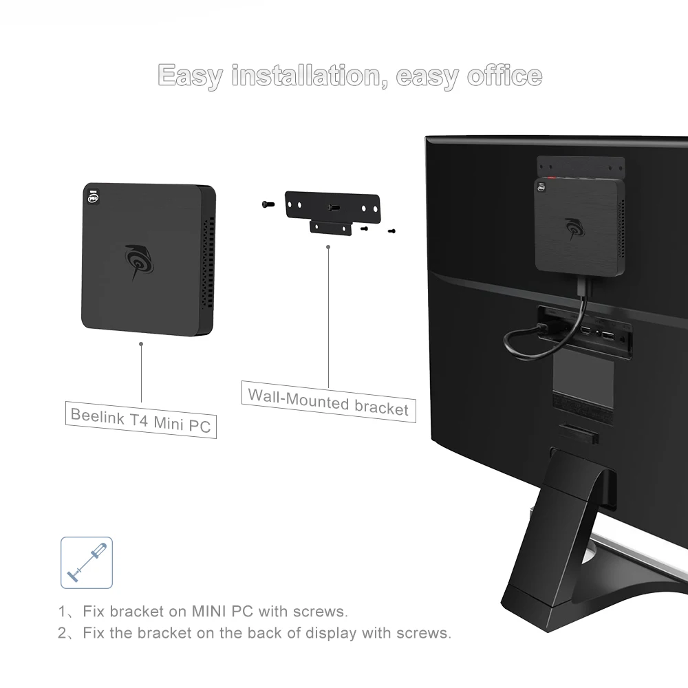 Мини-ПК BEELINK T4, Intel Atom, 4 + 64 ГБ, 1000 Мбитс, Wi-Fi, Bluet...