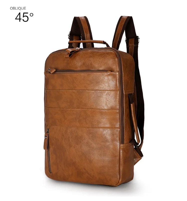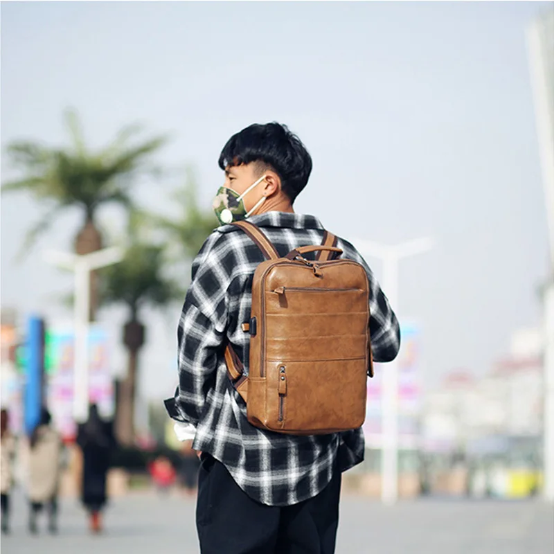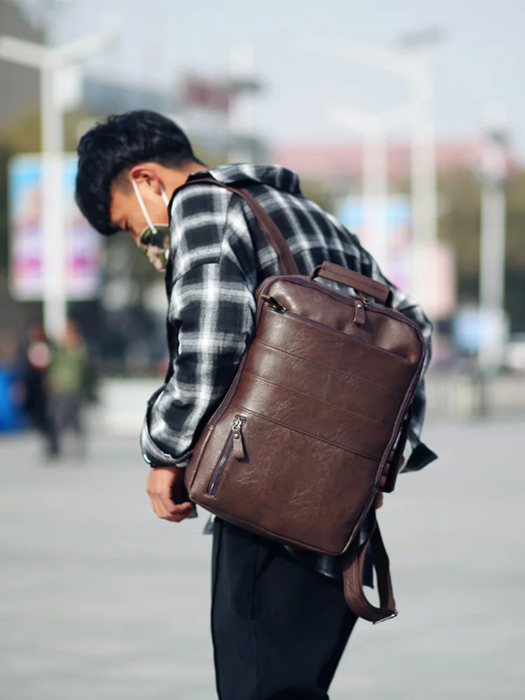 Вместительный винтажный рюкзак для ноутбука для мужчин, Мужская водонепроницаемая сумка, стильные дорожные ранцы из искусственной кожи для подростков