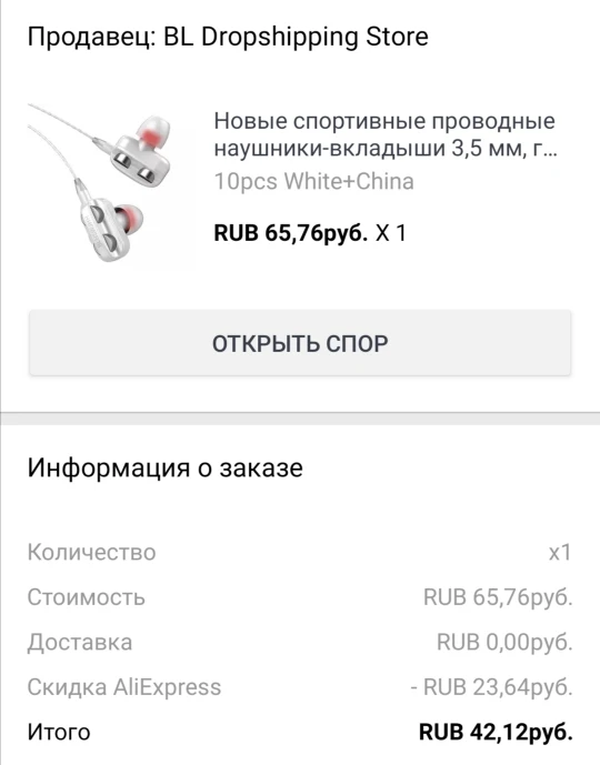 42рубля заплатил. Я в шоке. За эти копейки оно ещё и работает! Шло, правда, долго. Но! Даже регулятор громкости, ползунковый, есть на проводе! И кнопка ответа на вызов! Звук приличный, низов маловато, но откуда им взяться в этих дешёвых малютках. Звук чистый, без шумов и хрипов.