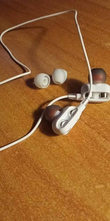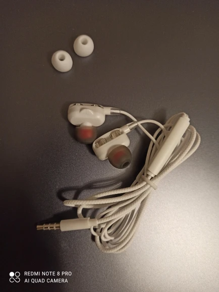 Наушники хорошие, звук отличный. В комплекте 2 белых резиновых вкладыша.