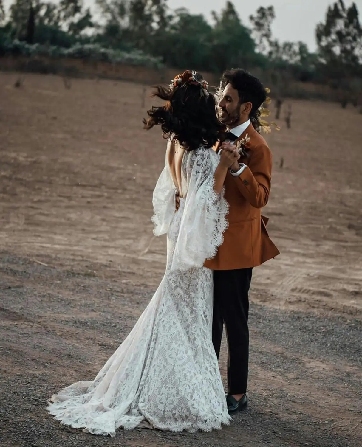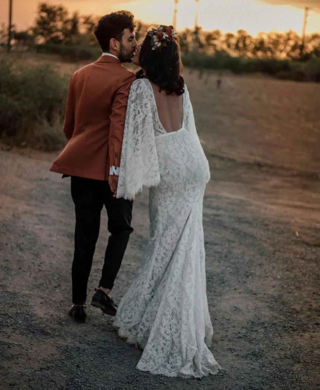 Женское свадебное платье с юбкой-годе, кружевное платье в стиле бохо с V-образным вырезом, длинным рукавом, открытой спиной и аппликацией, лето 2020