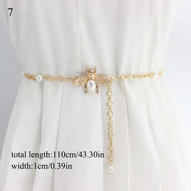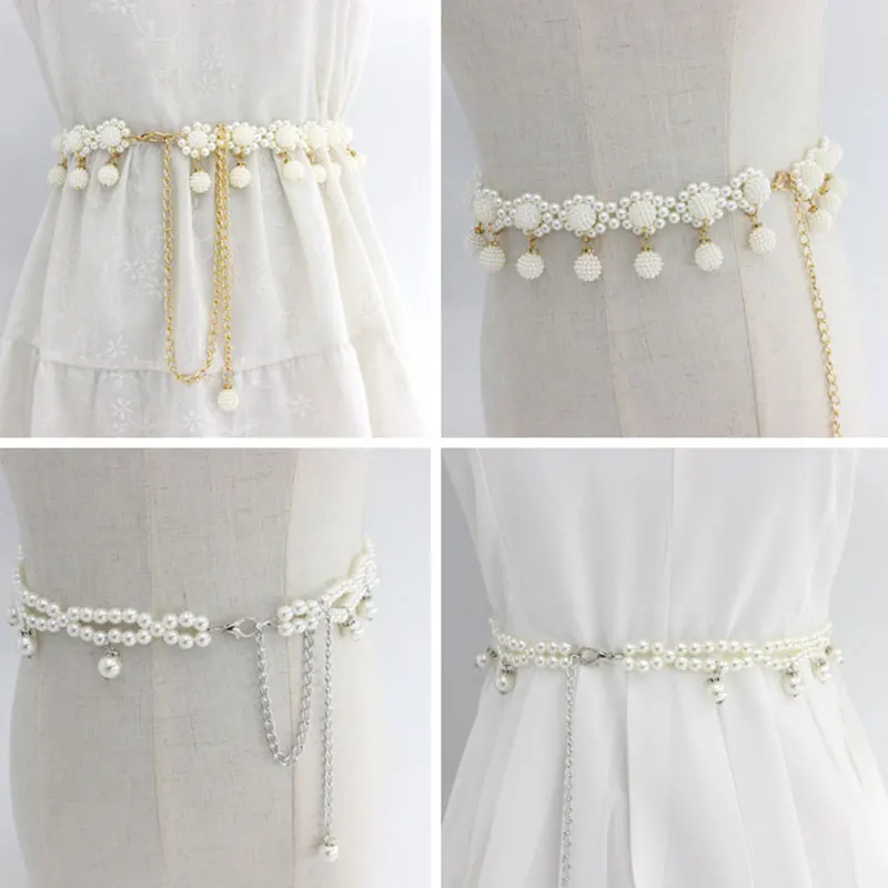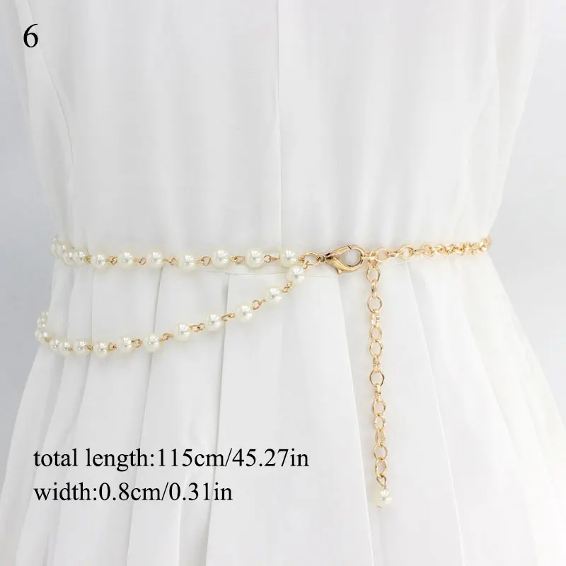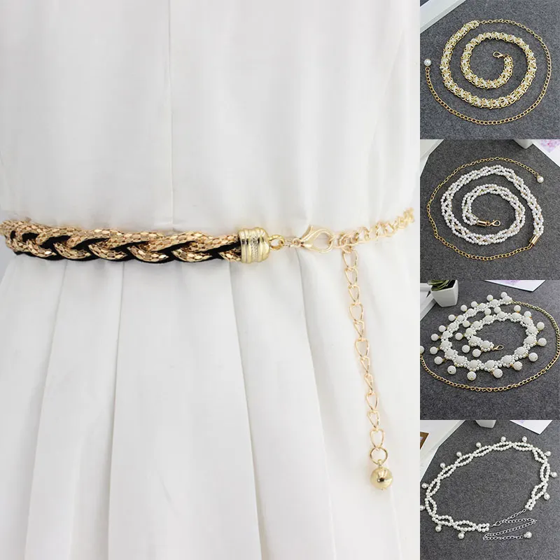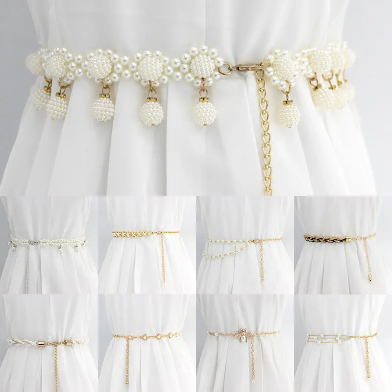 Поясная цепочка с бусинами, декоративный металлический пояс с жемчугом, 1 шт., женское платье с поясом, декоративный пояс с тонким поясом