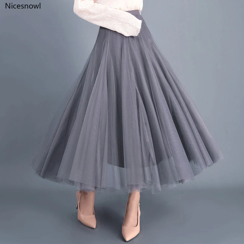 Бежевые, серые, розовые, Длинная юбка макси сезон: весналето женские 2020 новые вискозные юбки вечерние трапециевидной формы, юбка в сеточку для девочек, Женский Jupe