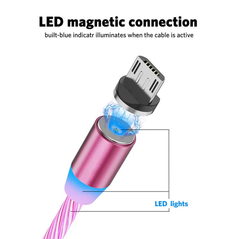 1 м Магнитный usb-кабель светодиодный светящийся струящийся Micro U...