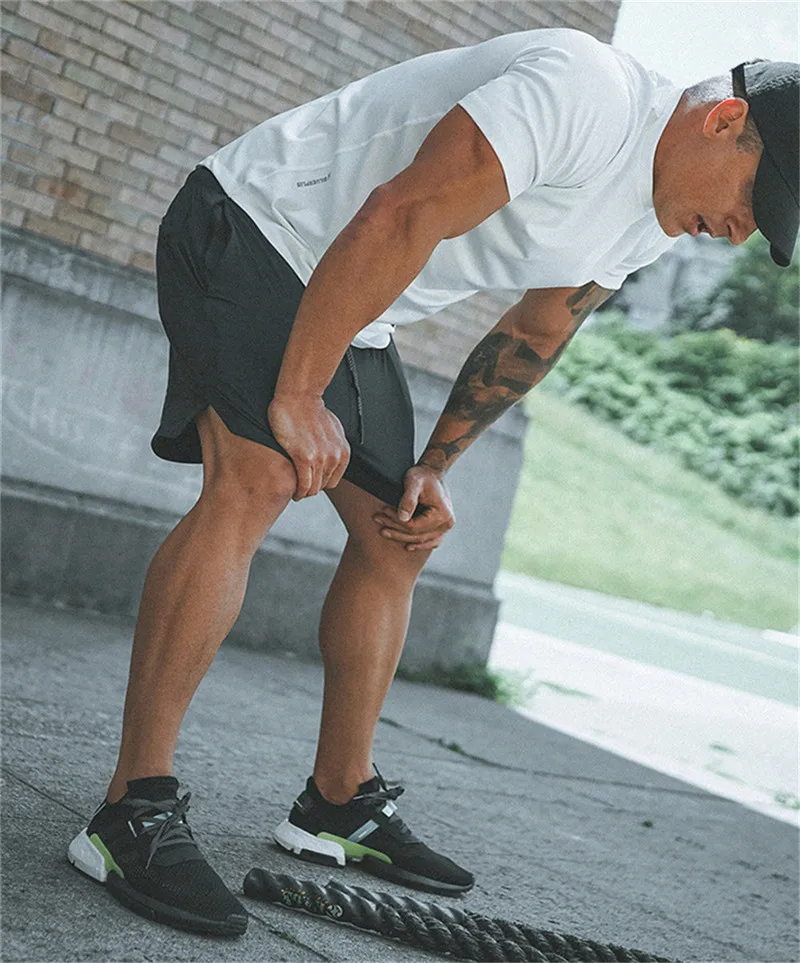 Шорты мужские спортивные быстросохнущие для бега и фитнеса, 2 в 1