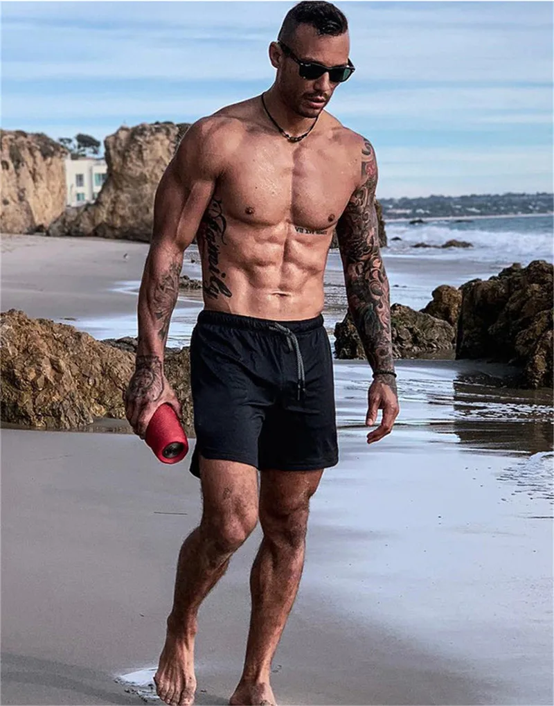 Мужские шорты 2 в 1, спортивные быстросохнущие пляжные шорты для фи...