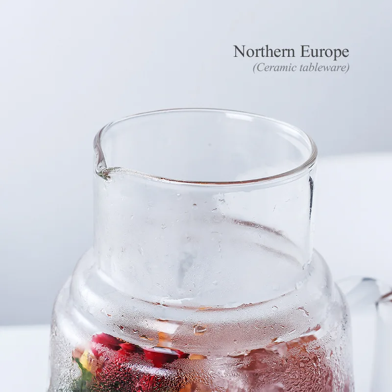 Стеклянный кувшин для воды 1200 мл с крышкой, графин для горячей и холодной воды с ручкой, большой хороший кувшин для домашнего сока, чая со льдом