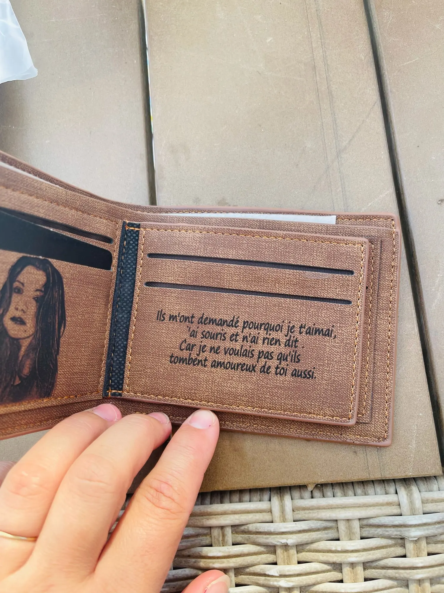 Мужской кошелек с гравировкой и фотографией, короткий бумажник из высококачественной искусственной кожи на заказ, подарок для мужчин на День отца, фестиваль