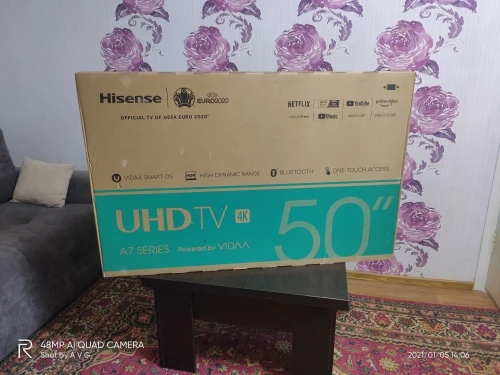 Телевизор 50" Hisense 4K Smart TV 50AE7200F, HDR, режим Галереи, звук DTS Virtual-X размером 127 см