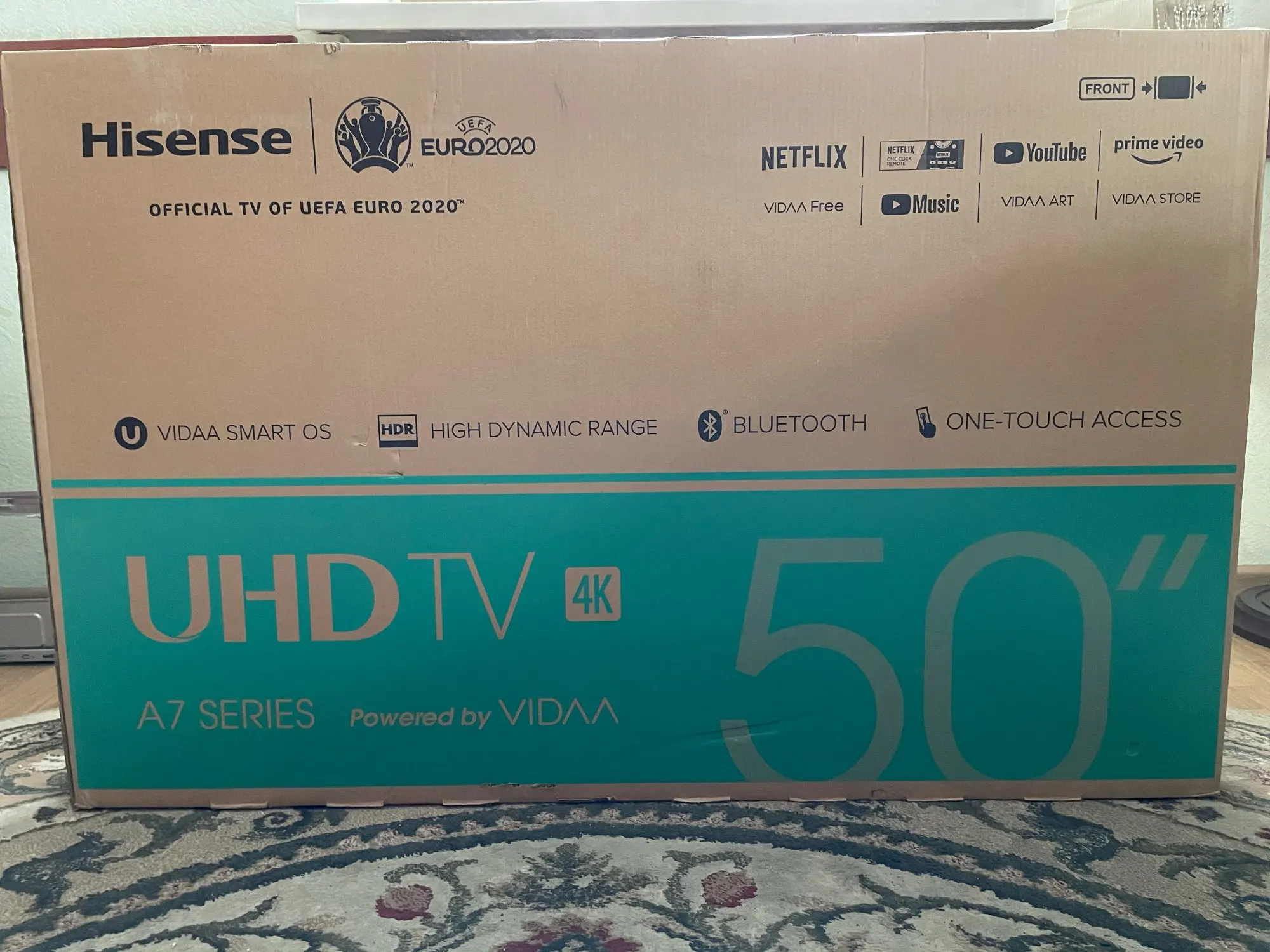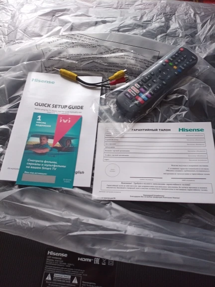 Доставка за 4 дня. Получали в пункте выдачи потому что сами так захотели. Коробка была в одном месте дырявая, на пункте посмотрели сам телевизор целый. Показывает чётко, проблем с подключением не было,делали все по инструкции. Подписка на иви лежала с документами. Купили кранштэйн и повесили на стену. Смотрим уже пару недель, всё в порядке.