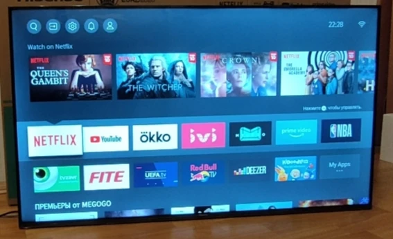Телевизором более чем доволен. не смотря на то, что на борту не андроид, а собственная ОС vidaa, имеются предустановленные приложения okko, ivi, youtube, netflix, megogo, в которых масса платного и бесплатного контента, а благодаря браузеру смотрю кинотеатр wink своего провайдера. WiFi и провод подцепились моментально без всяких танцев с бубном. Картинка сочная и четкая. Воспроизведение звука выбрал "голос", т.к.по мне эта самая подходящая настройка. В общем теперь телевизором пользуемся целым днем всей семьёй: с утра до вечера детские мультфильмы, а вечером смотрим какой-нибудь фильмец в высоком качестве! Из минусов, это отсутствие приложения wink, но это сугубо моё мнение из-за того, что провайдер у меня ростелеком. За свои деньги очень удачная покупка!