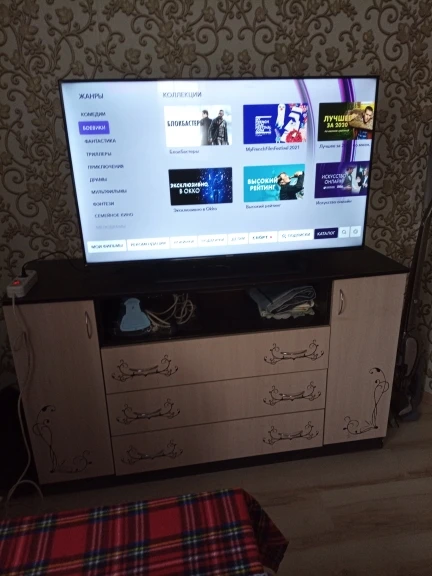 В комплекте со стиральной машиной отличная акция. Картинка с приставки ростелеком хорошая. С предустановленной ivi отличная, цветопередача устраивает. LG 42" четырех летний переехал на кухню.