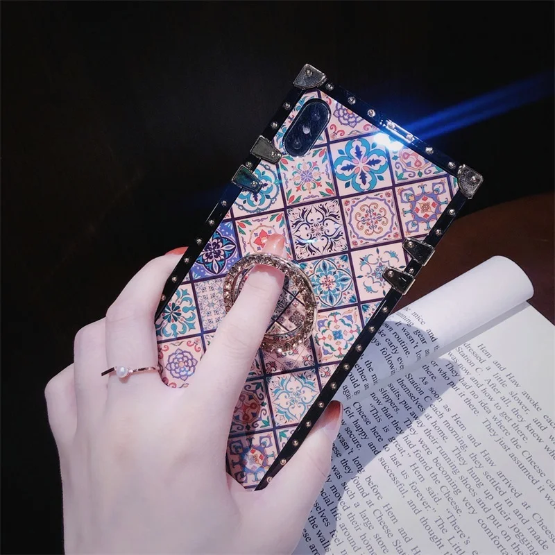 Роскошный квадратный цветочный плед + кольцо чехол для телефона Iphone 12 11 Pro Max Xs Max XR мягкий чехол для Samsung S20Ultra S10 S9 Plus Note10