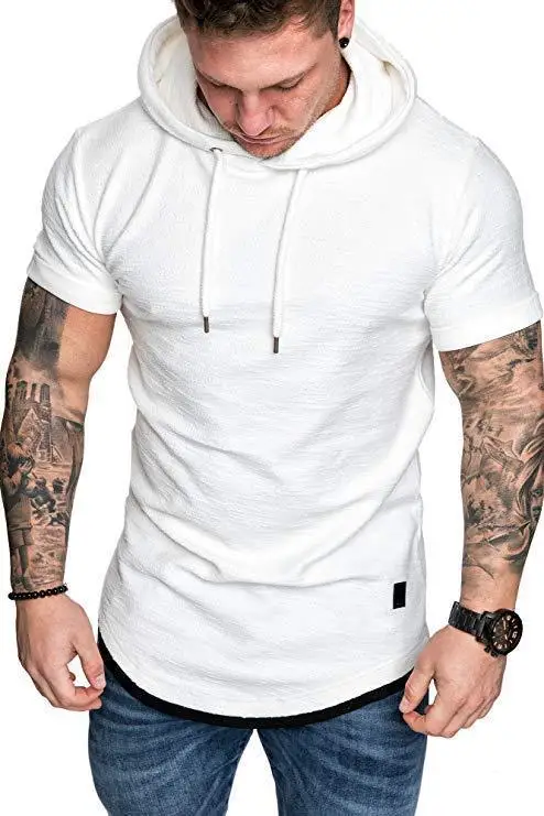 Футболка мужская с капюшоном, модная короткая рубашка в стиле пэчво...