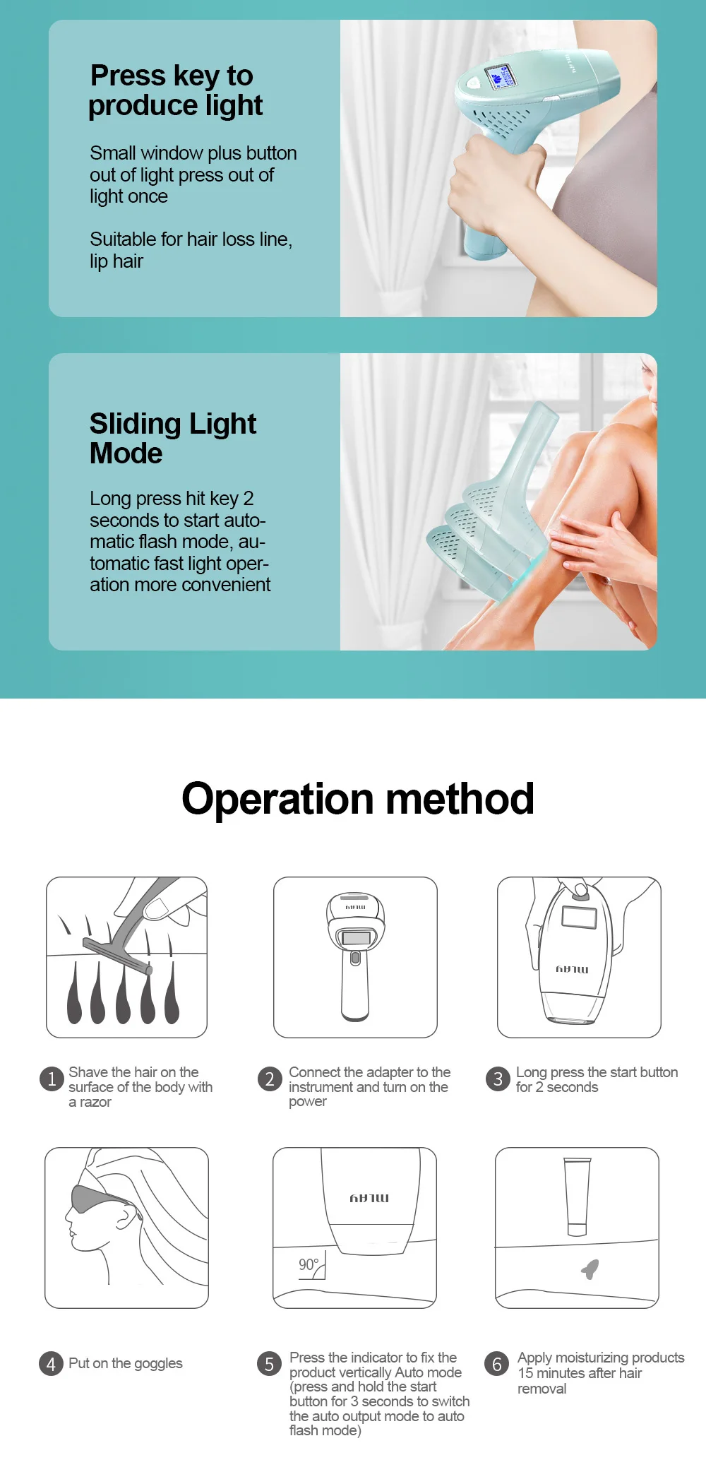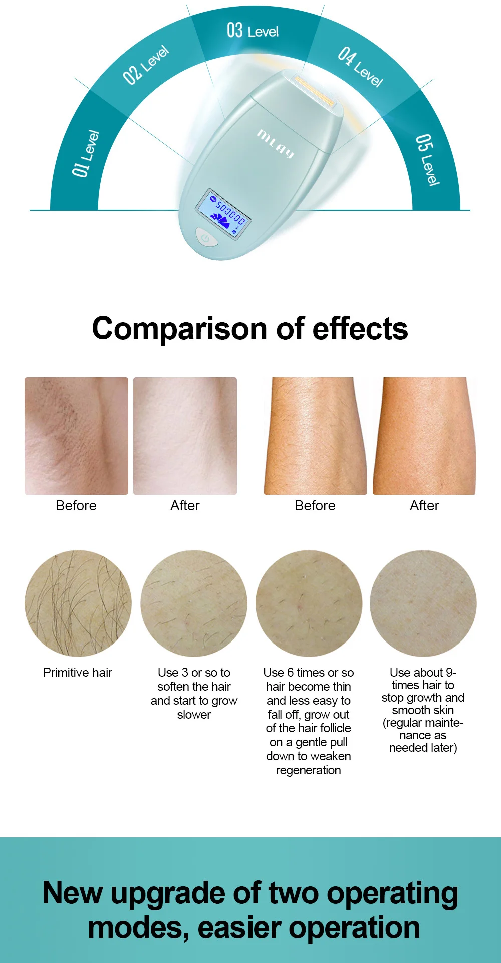 1. Премиум уход в комфорте вашего дома-Наслаждайтесь высококачественными услугами по удалению волос в любом месте. Наше устройство для удаления волос имеет компактный дизайн, который позволяет легко носить его с собой, когда вы идете. Вы никогда больше не потратите сотни долларов на салон красоты.2. Наиболее эффективная система удаления волос на теле-средство для удаления волос на теле MLAY использует интенсивный импульсный светильник (IPL) для обеспечения наиболее эффективного постоянного удаления волос. Он имеет 5 уровней энергии и будет давать отличные результаты только в 4-6 обработках.3.100% безопасно для вашей кожи-новейшая технология удаления волос IPL гарантирует вам полную безопасность по сравнению с другими методами постоянного удаления волос. Поэтому вы гарантируете полную безопасность, когда вы делаете это устройство для удаления волос на выбор. Надевайте очки при использовании устройства.4. Идеально подходит для мужчин и женщин-наше IPL постоянное устройство для удаления волос является идеальным выбором как для мужчин, так и для женщин. Идеально подходит для удаления волос с рук, подмышек, ног, спины, груди, линии бикини и лица. Примечание: Не для использования на красном, белом или сером волосах и коричневых или черных оттенках кожи.5. Надежный выбор для удаления тонких и густых волос-мы исследовали более 2000 человек по всему миру. Для удаления тонких волос: около 86.5% человек тонкие волосы 5 сеансов. Для удаления густых волос: около 83.2% человек требуют 8 занятий. После 3-6 месяцев использования, волосы заметно меньше и рост волос предотвращается, нам просто нужно поддерживать только каждые два или более Месяцев.6. Применимо: Рабочее напряжение 100 ~ 240 В, подходит для всех стран мира 7. Постоянный: IPL работает внутри пор, разрушает волосы papilla, таким образом, обеспечивает постоянное удаление волос8. Длительный срок службы: кварцевая лампа для удаления волос с более длительным сроком службы и долговечным использованием9. Нулевые расходные материалы, без средних, без расходных материалов10. Безболезненный: пять регулируемых оптимальных уровней энергии в зависимости от толерантности кожи. Обеспечивает нежное лечение безболезненно и легко, не повреждая кожу. Светодиодный светильник ясно показывает уровень энергии.11. Быстрая и Большая область обработки: 3,9 квадратный см размер места не слишком большой или не слишком маленький для любой кривой тела, высокая эффективность и быстрая скорость, которая занимает всего несколько минут, чтобы удалить перекрещивающиеся волосы, которые трудно для традиционного метода удаления волос12. Безопасность: не влияет на нормальное выделение пота и кожного сала13. Удобно: портативный dsign и легко брать