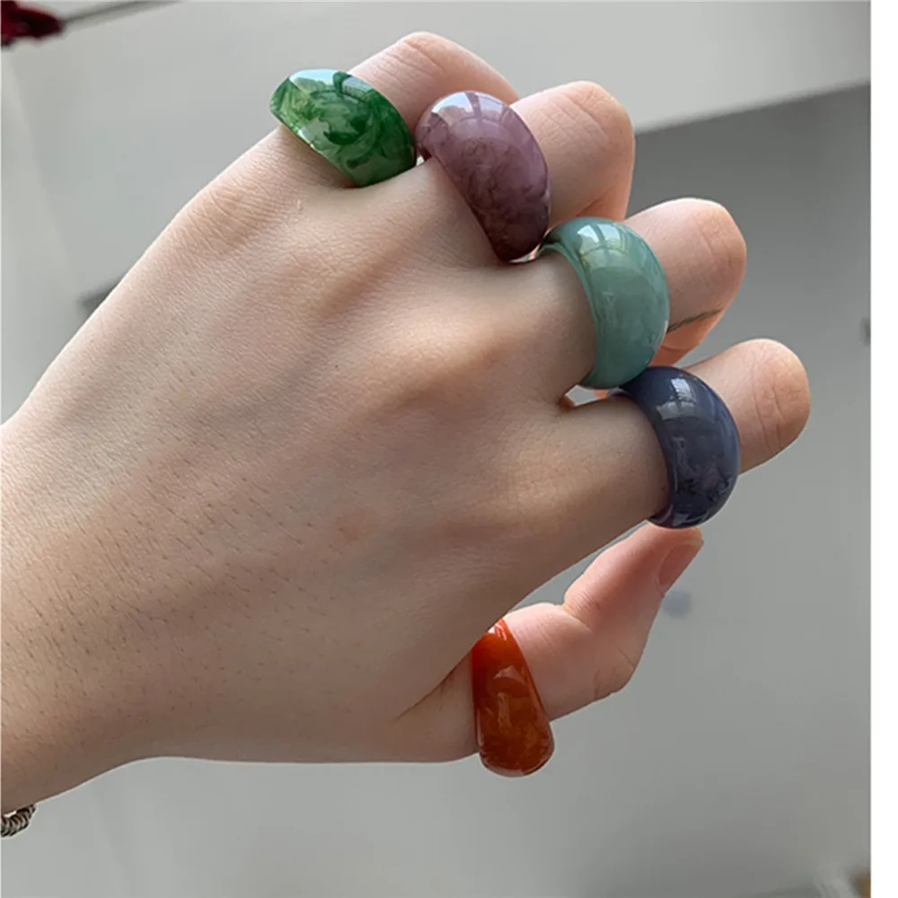 Женские кольца из акрила FFLACELL, разноцветные прозрачные кольца нестандартной геометрической формы, со стеклянным шариком, ювелирные украшения, лето 2020