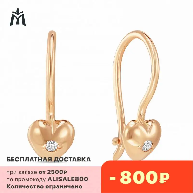 Золотые серьги c фианитом, 585 пробы, MIUZ Diamonds (Московский ювелирный завод)