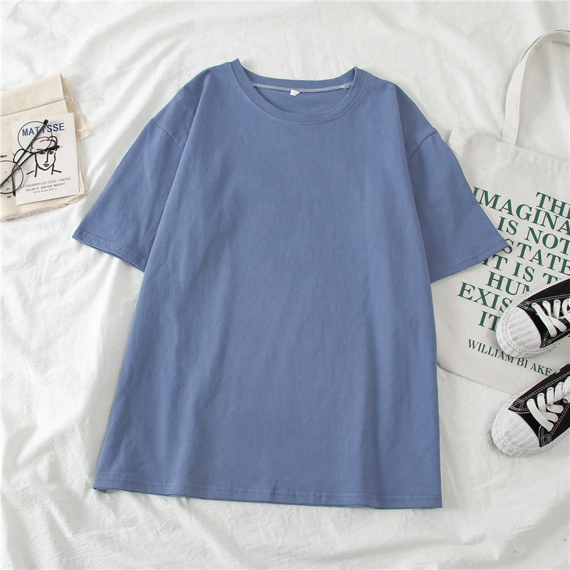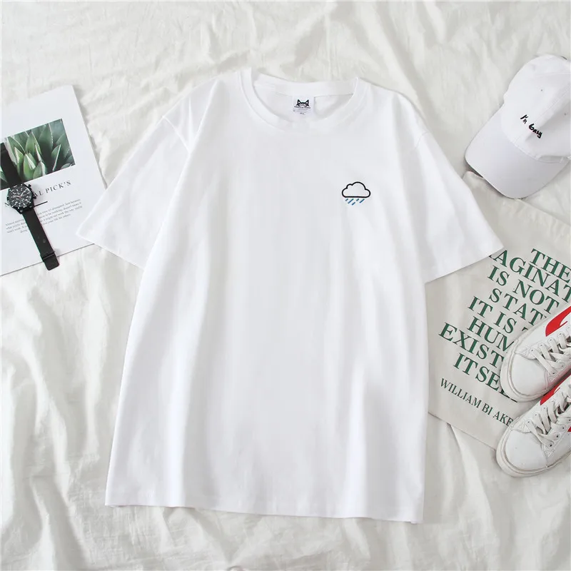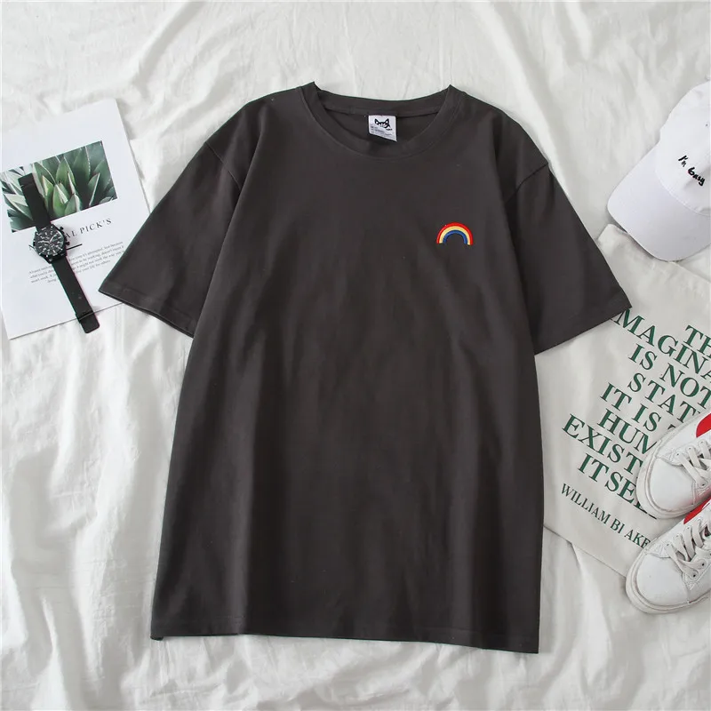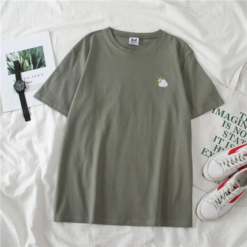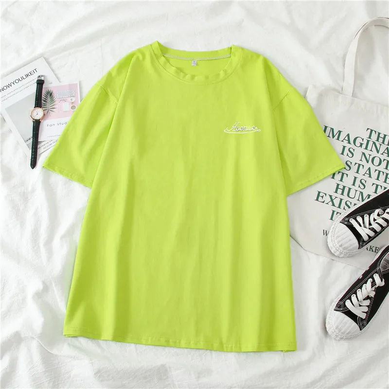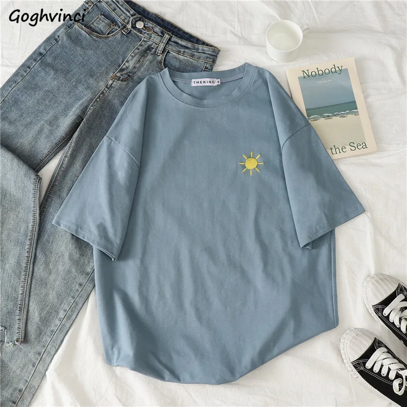 Женские футболки с коротким рукавом, с круглым вырезом и вышивкой, в Корейском стиле