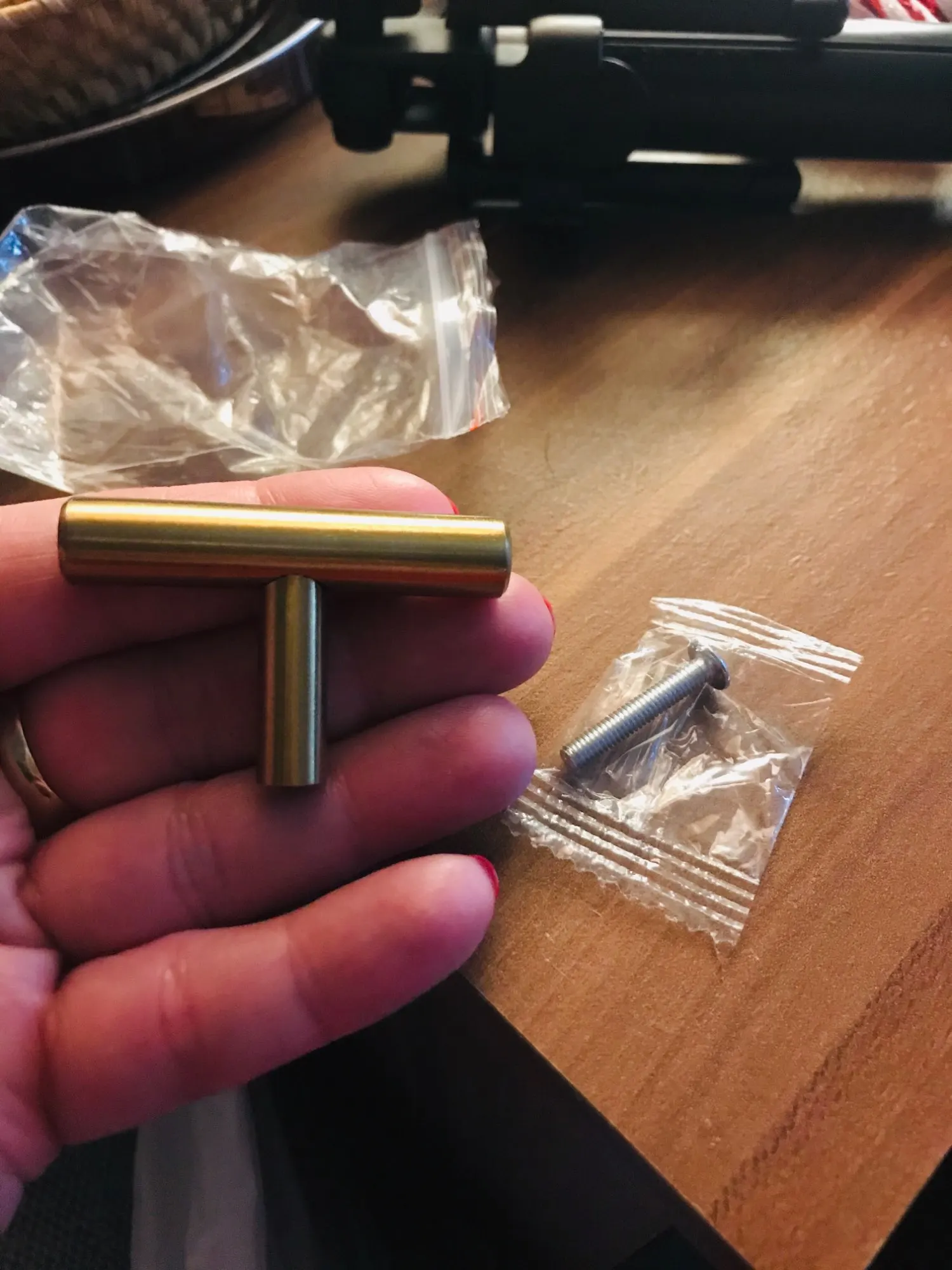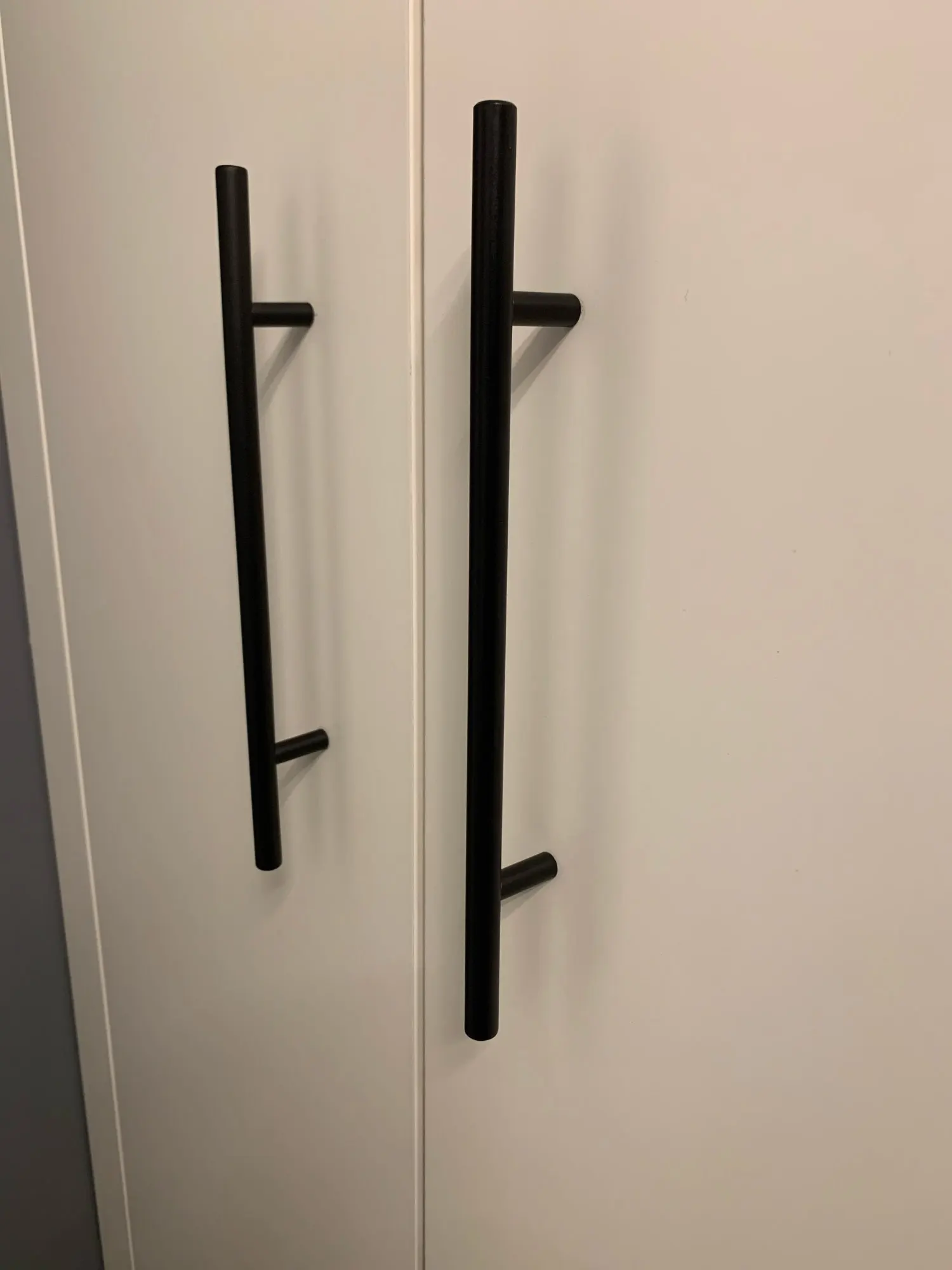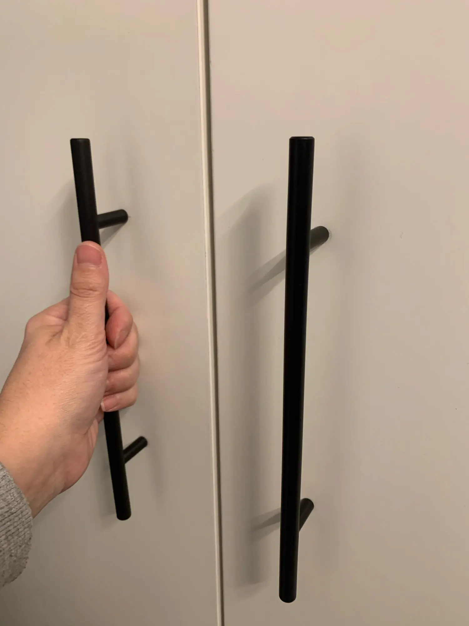 Очень красивые пластиковые ручки. Я купил более длинные винты (4x35 мм), так как доставили короткие товары для комода Ikea Malm.