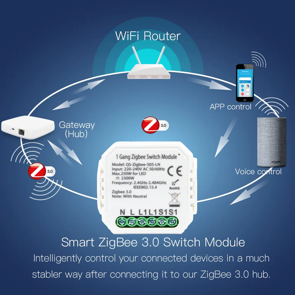 Умный модуль высветильник еля света Tuya ZigBee 3,0, работает с Alexa Google Home, для голосового управления Smart LifeTuya, беспроводной пульт дистанционного управления
