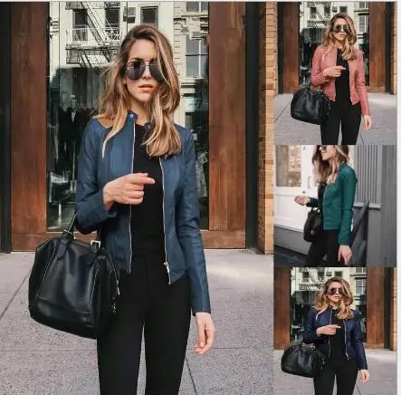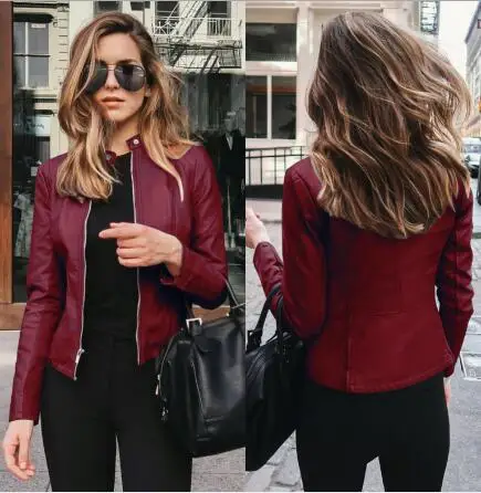 Куртка женская из искусственной кожи, на молнии, несколько цветов, Осень-зима, S-3XL