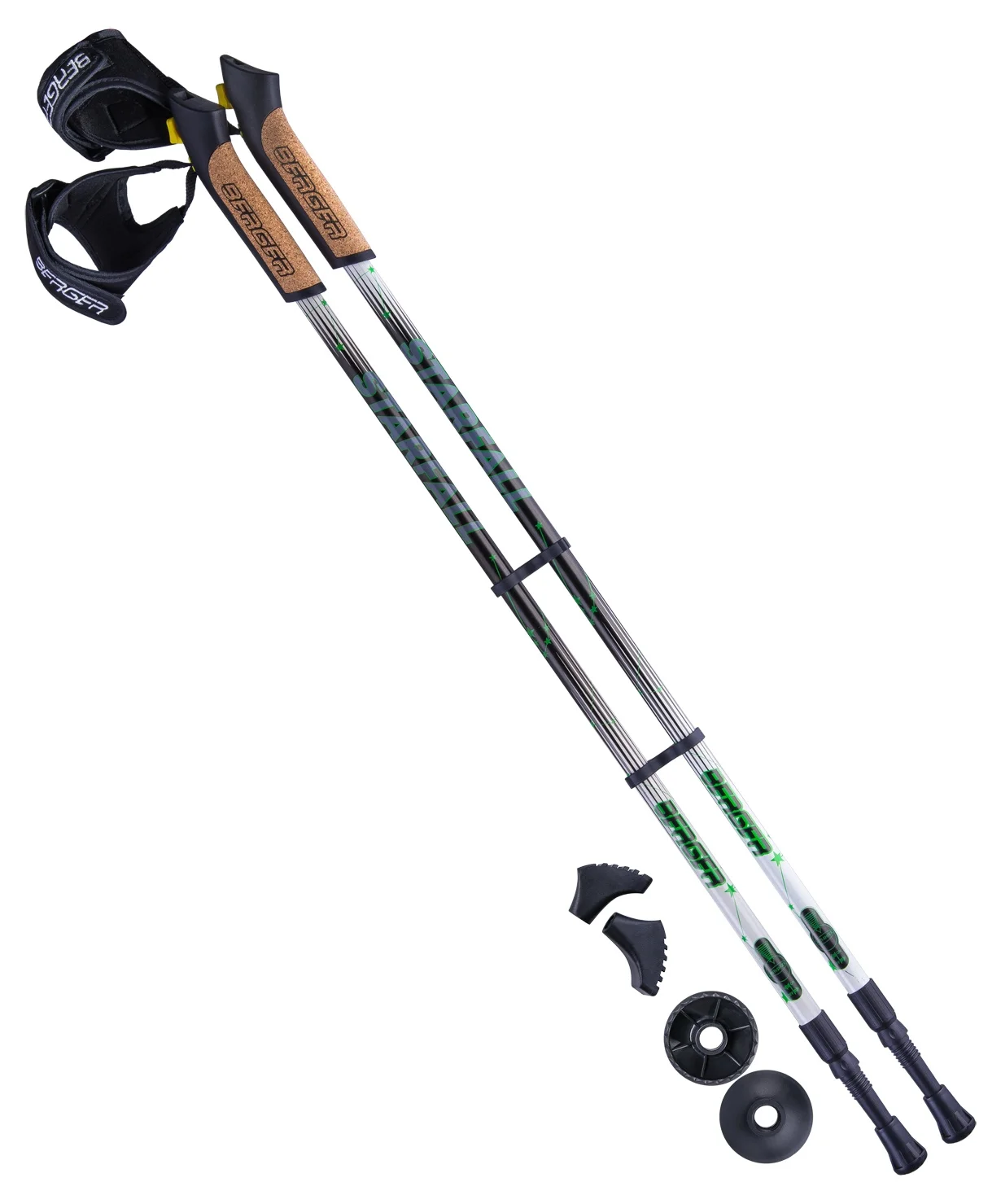 Палки для скандинавской ходьбы Berger Starfall, 77-135 см, 2-секционные, чёрныйбелыйярко-зелёный