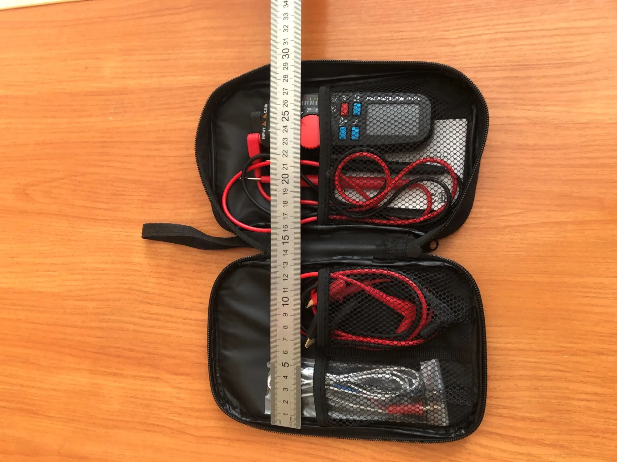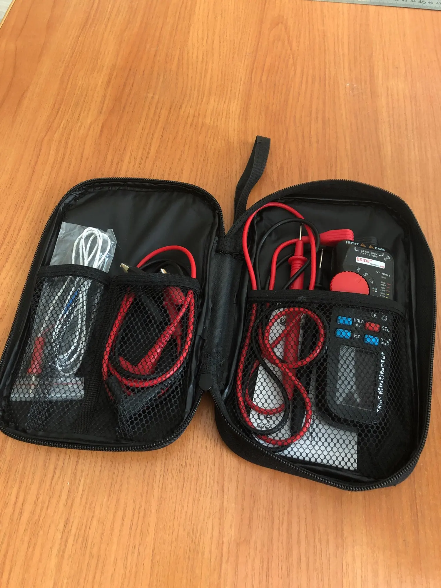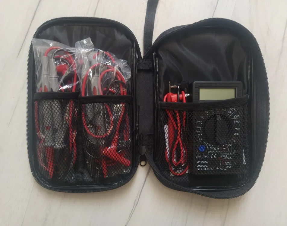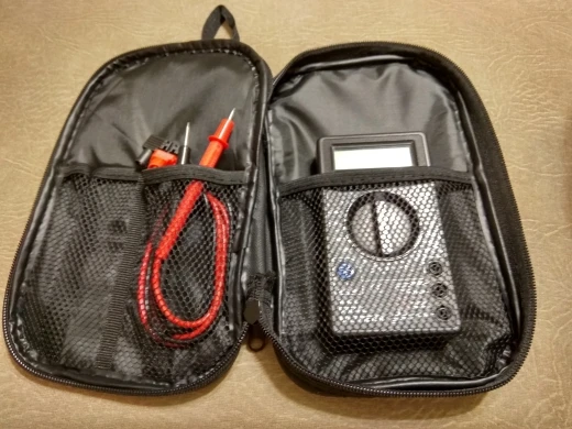 Отличная сумка,мне как раз подошла,теперь в порядке лежит мультиметр с щупами,запасные щупы,щупы с крокадилами и usb тестер.