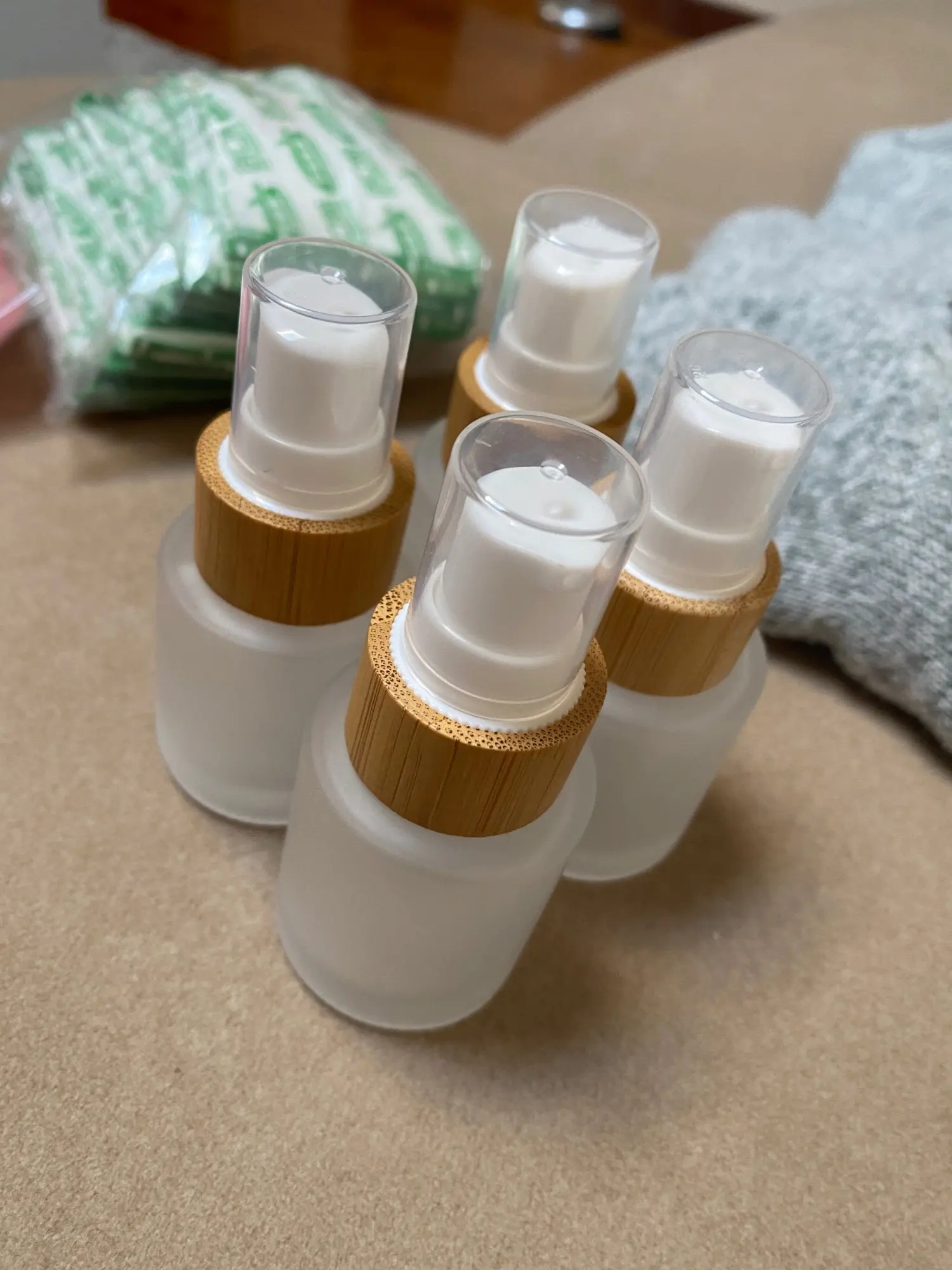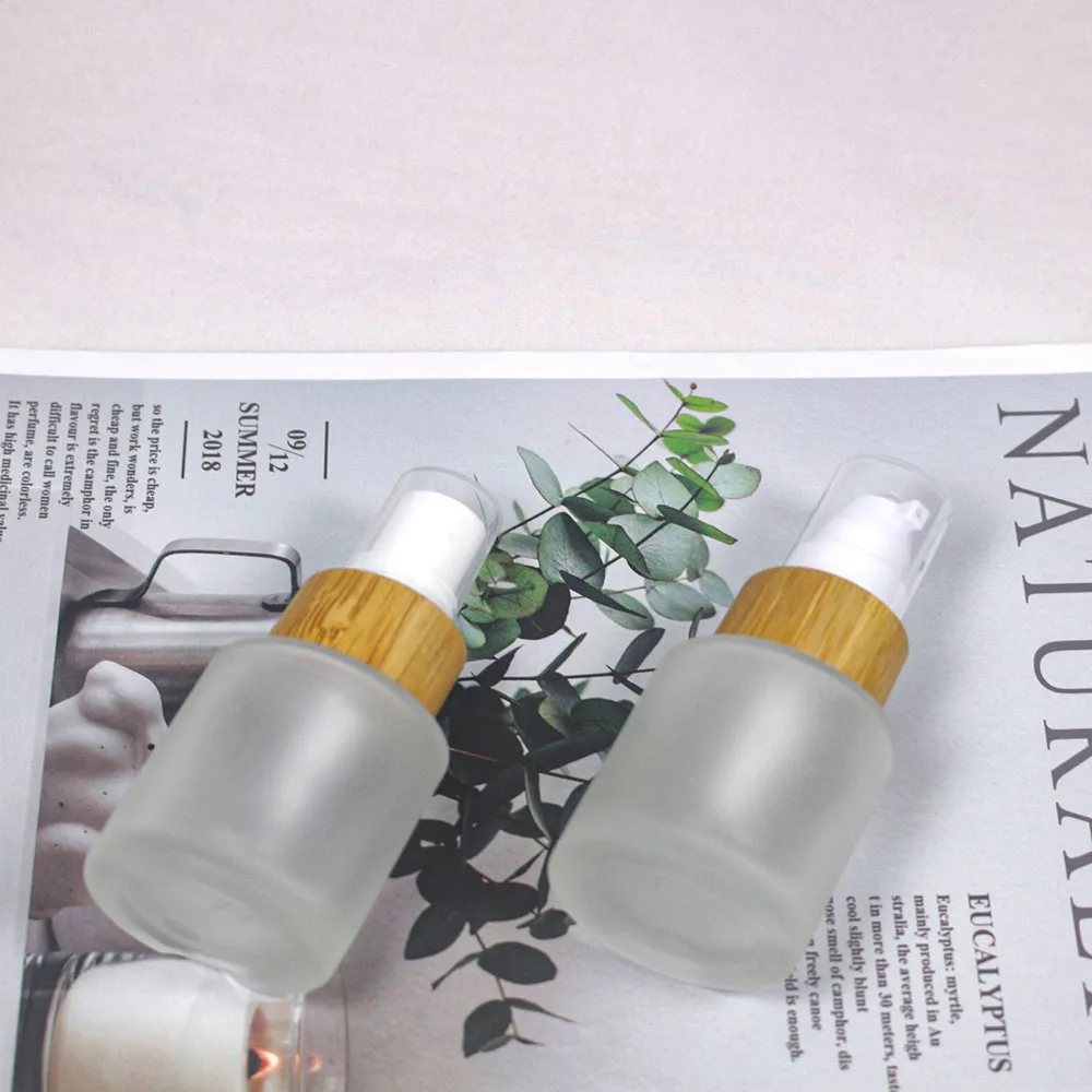 20 мл Косметическая матовая стеклянная банка для крема, бутылка с распылителем для лосьона, Экологичная бамбуковая крышка, деревянная крышка, упаковка для ухода за кожей