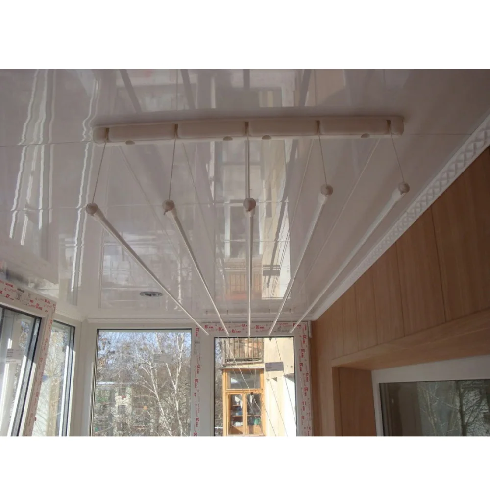 Белье сушится под самым потолком и не создает неудобств.