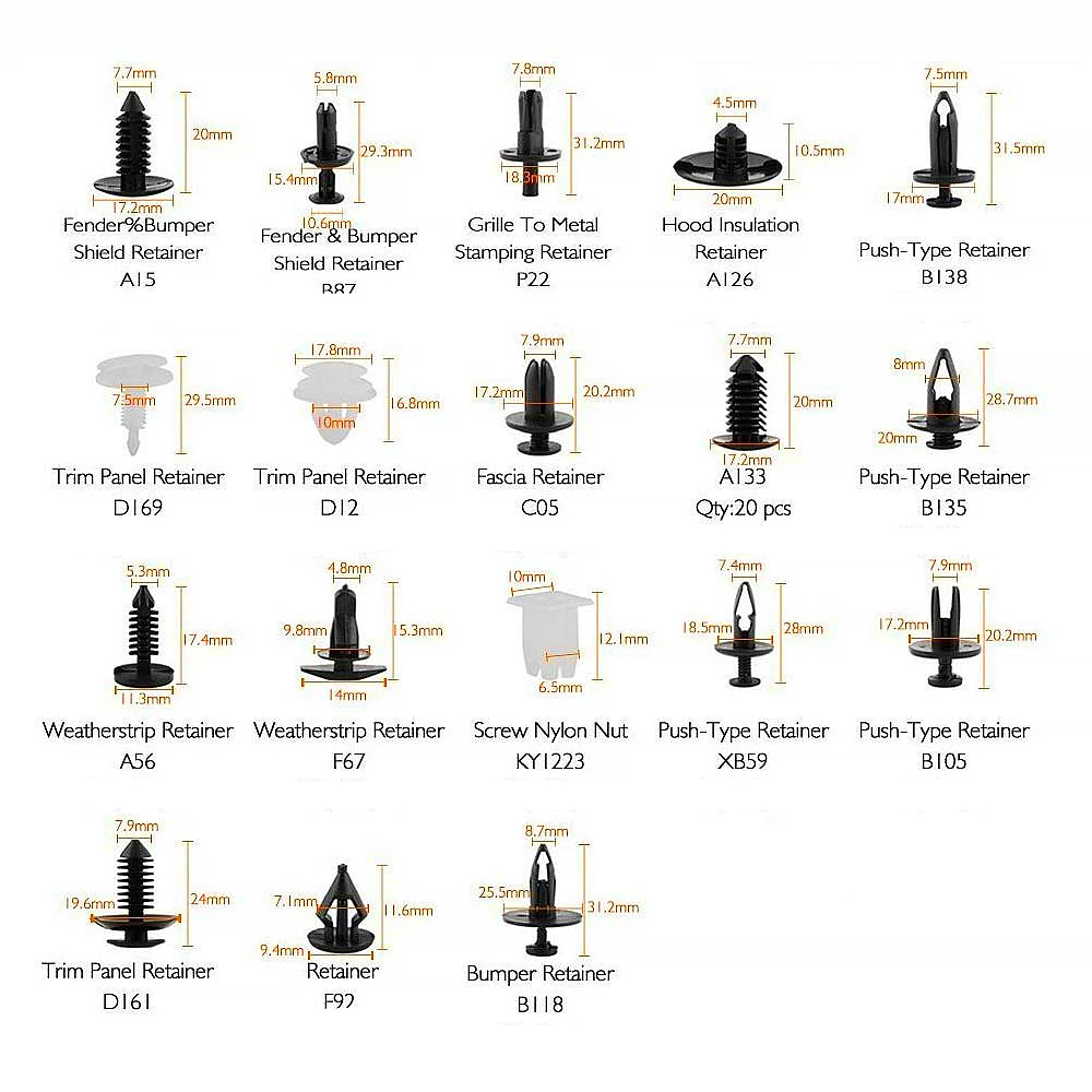 Набор фиксаторов для автомобиля, 18 популярных размеров, набор заклепок 415 для Ford, Toyota, зажимы отделки дверной панели шт.