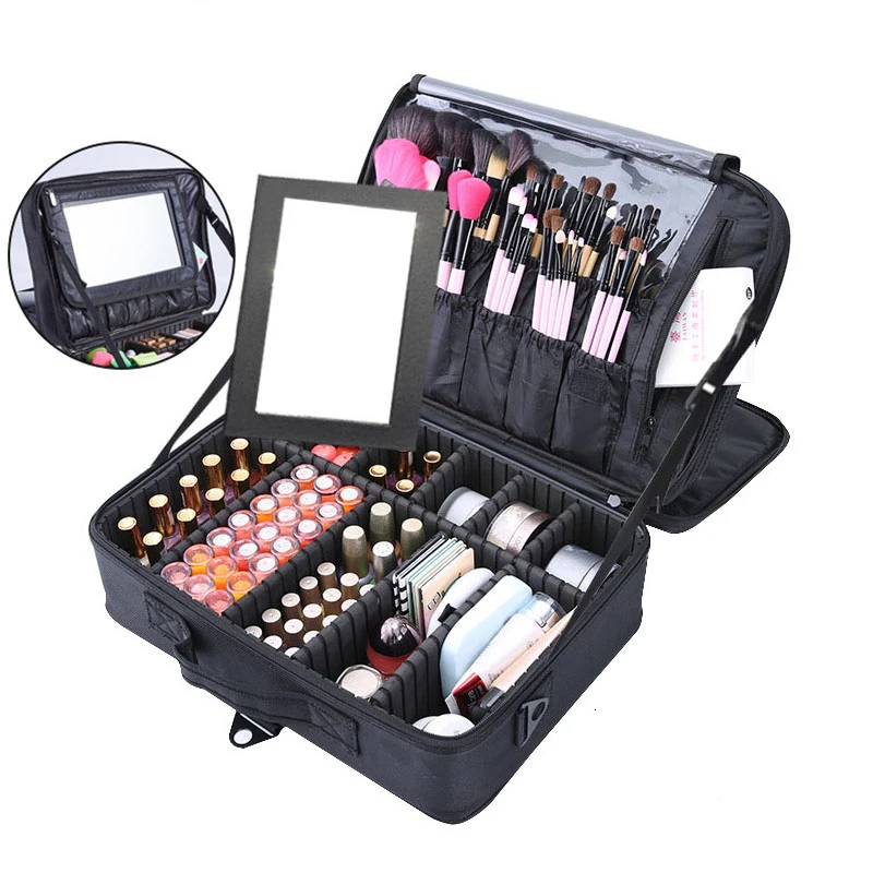 Высокое качество косметичка профессиональный макияж Чехол Органайзер для макияжа с зеркалом косметический чехол вместительные сумки для хранения
