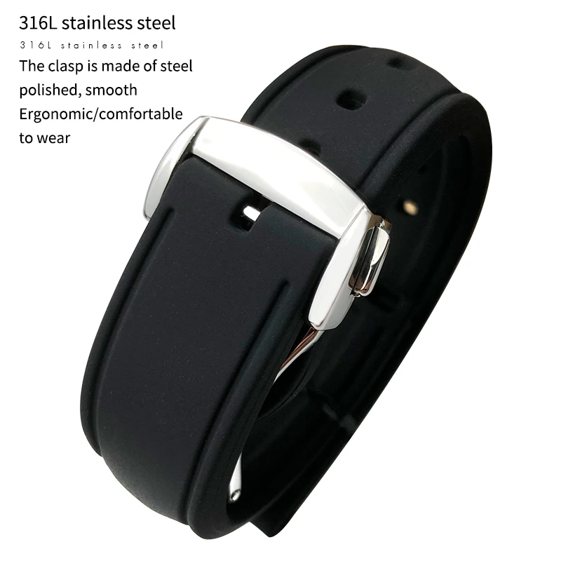 Ремешок для часов 20 мм, резиновый браслет из фтористого каучука, Ч...