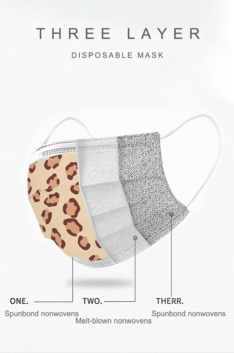 Маска для лица с леопардовым принтом, 50 шт.