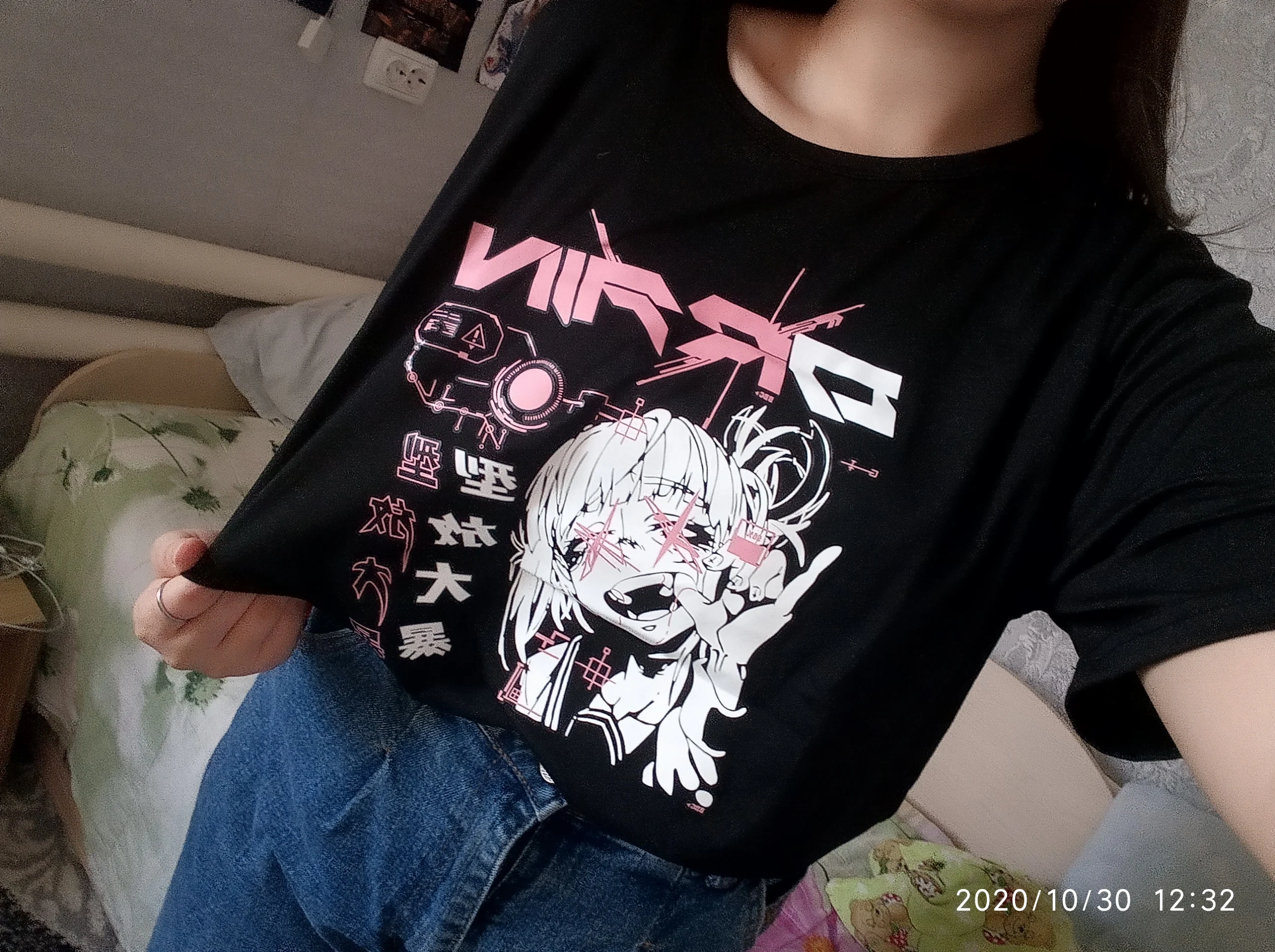 Пришла футболка буквально за две недели в Москву, это очень радует. Заказывала oversize, в итоге пришло будто L, имейте в виду. Ткань 65% полиэстер 35% коттон. Рисунок в целом чёткий, но ощущение будто это бумага какая-то. За эти деньги товар хороший, могу порекомендовать