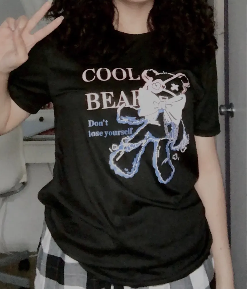 Очень мило! Только то, что мне не очень нравится, это ткань, потому что я ожидал, что она будет из хлопка, но это не большая покупка. Очень мягкий. Обычно я ношу XS/S, но я хотел, чтобы он был больше, поэтому я получил XL, и он был идеальным :-).