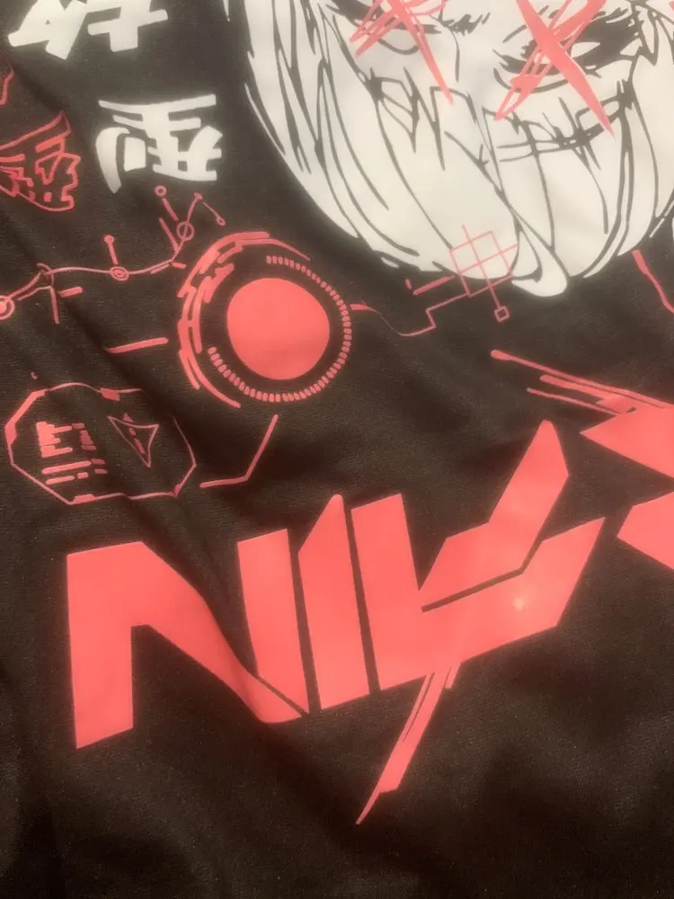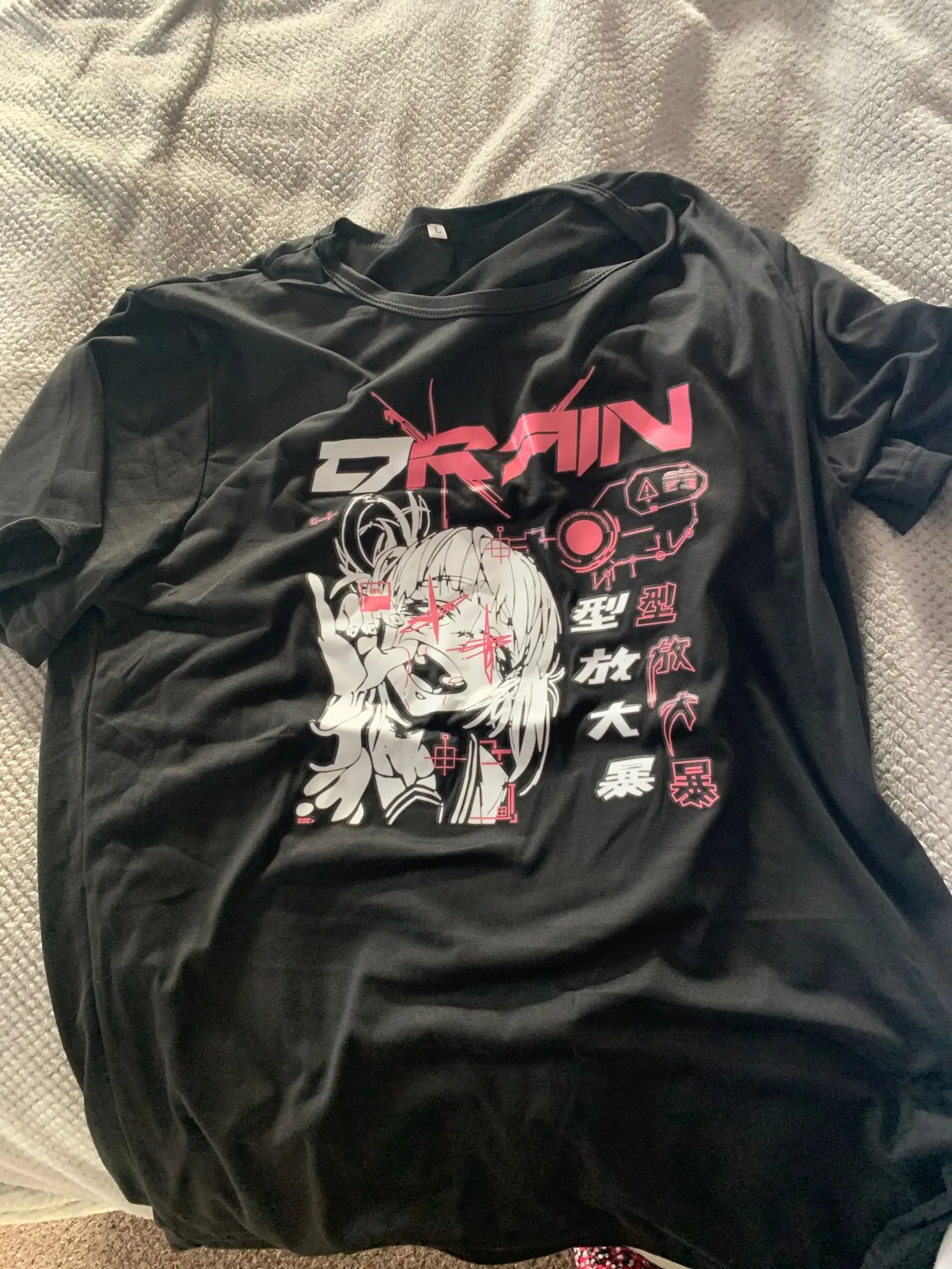 Came in super fast,except the fabric is more like a thin sportswear shirt or swimsuit. and i got 2xl to make it oversized like the photos they show but it looks more like a large so i suggest getting a really bigger size if they have more sizes. other than that the sprint is nice and looks like it