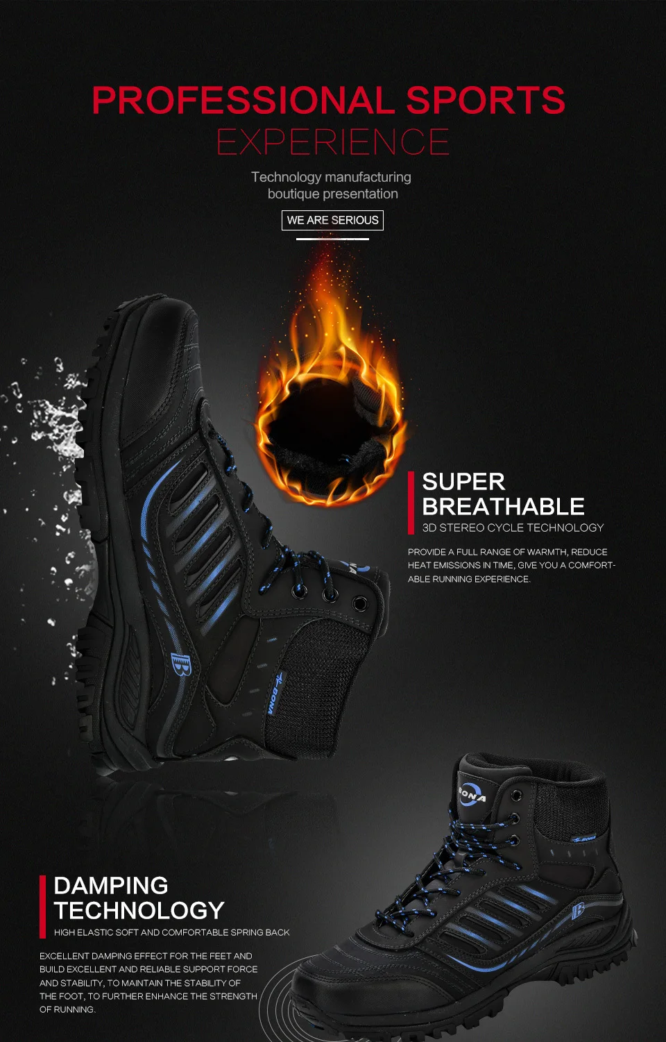 Кроссовки BONA мужские туристические, зимние водонепроницаемые треккинговые ботинки, Нескользящие Сникерсы для походов и охоты