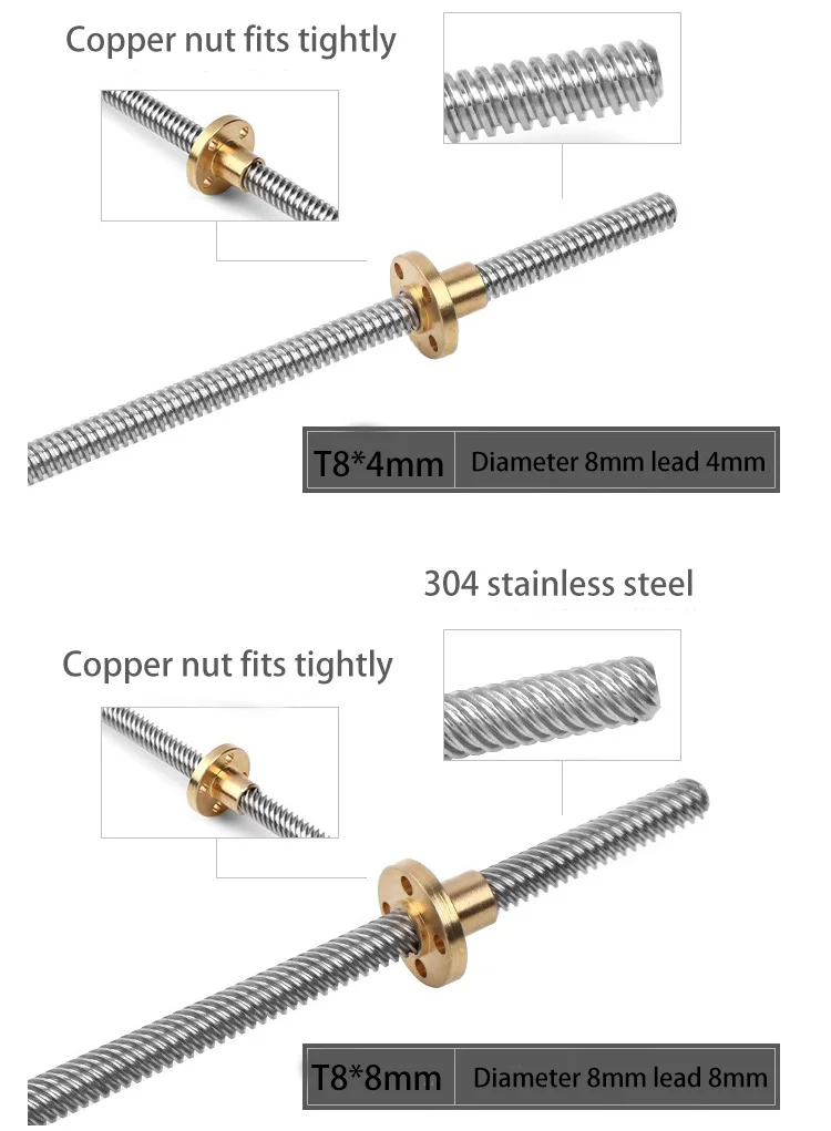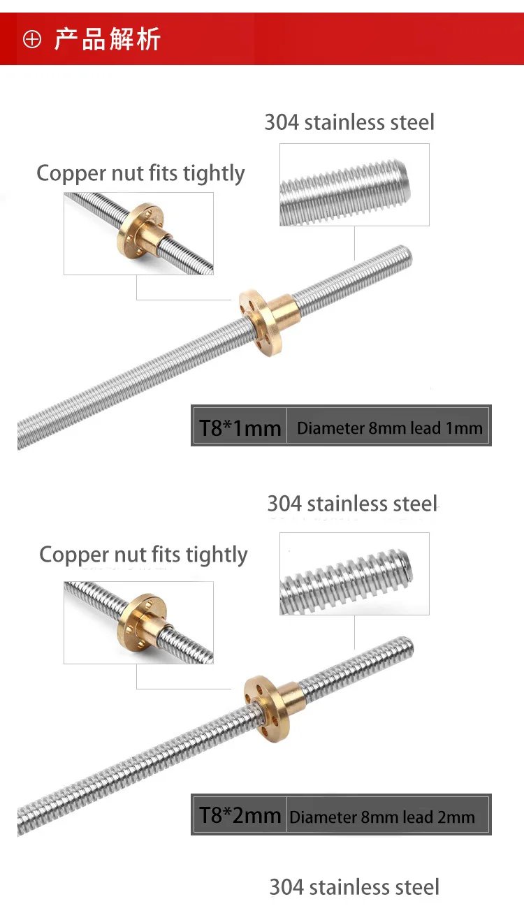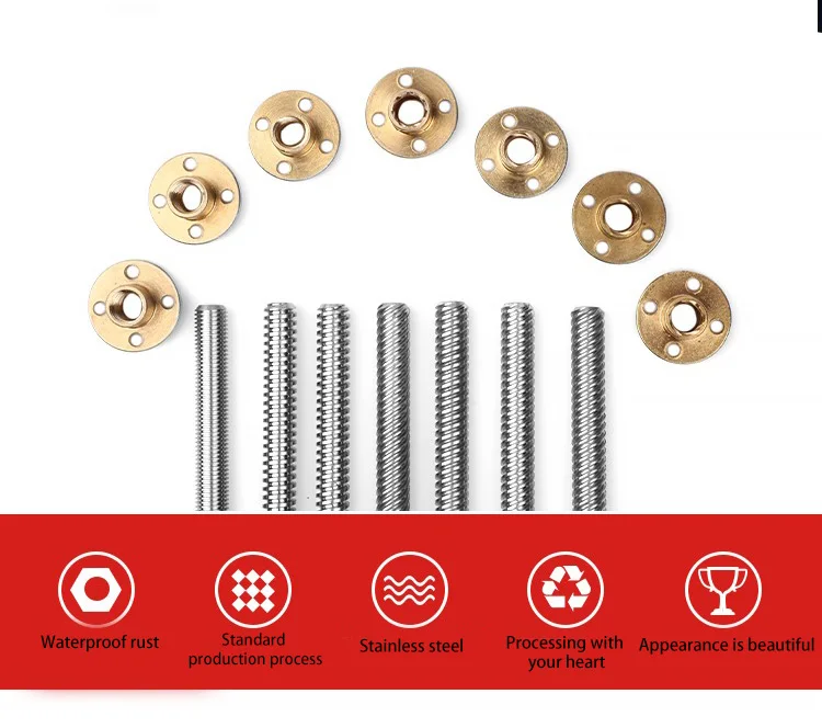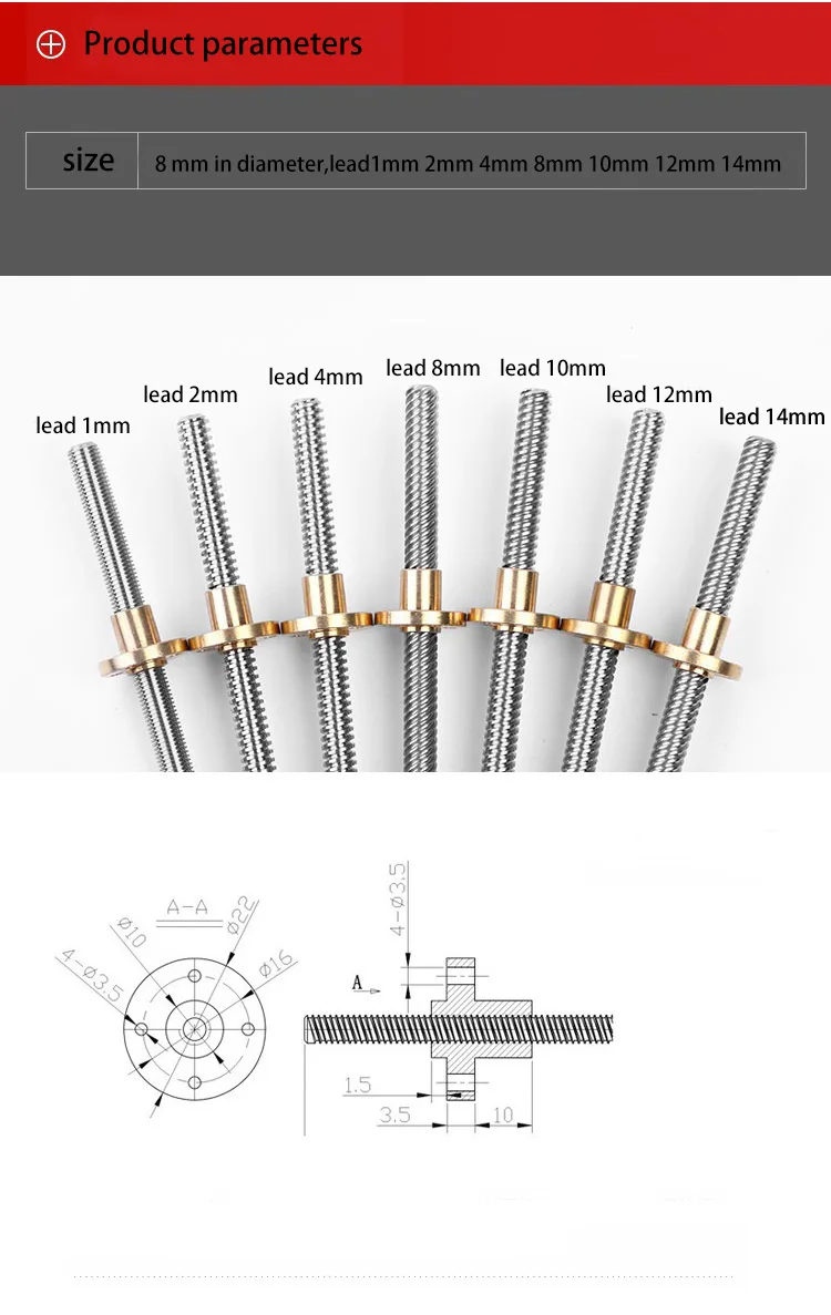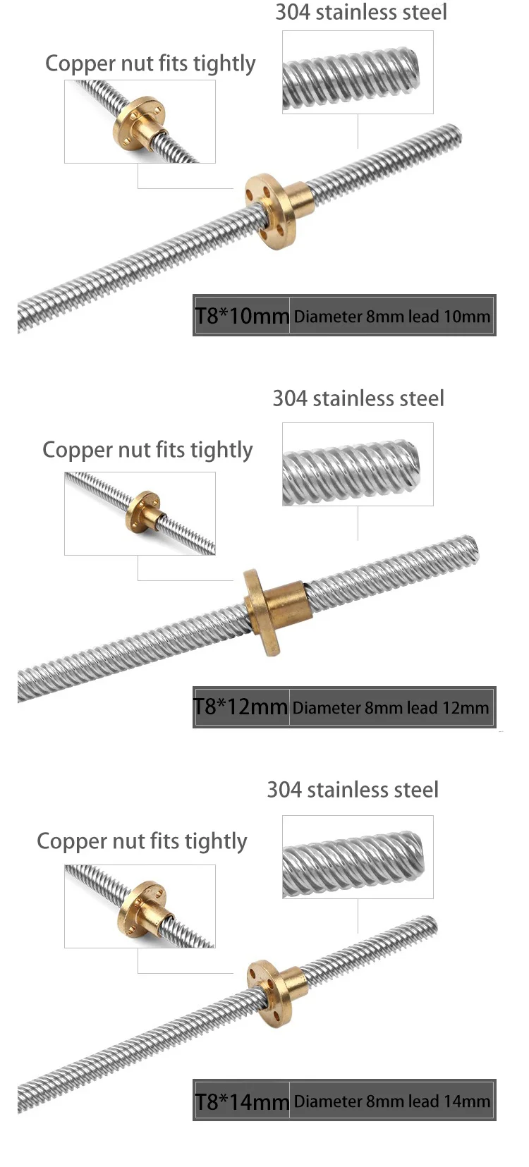 Линейный направляющий винт T8, 1 мм, 2 мм, 4 мм, 8 мм, 12 мм, 14 мм, 2 мм, длина от 100 мм до 600, с латунной гайкой, для 3D-принтера с ЧПУ
