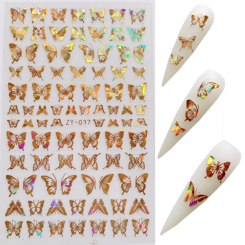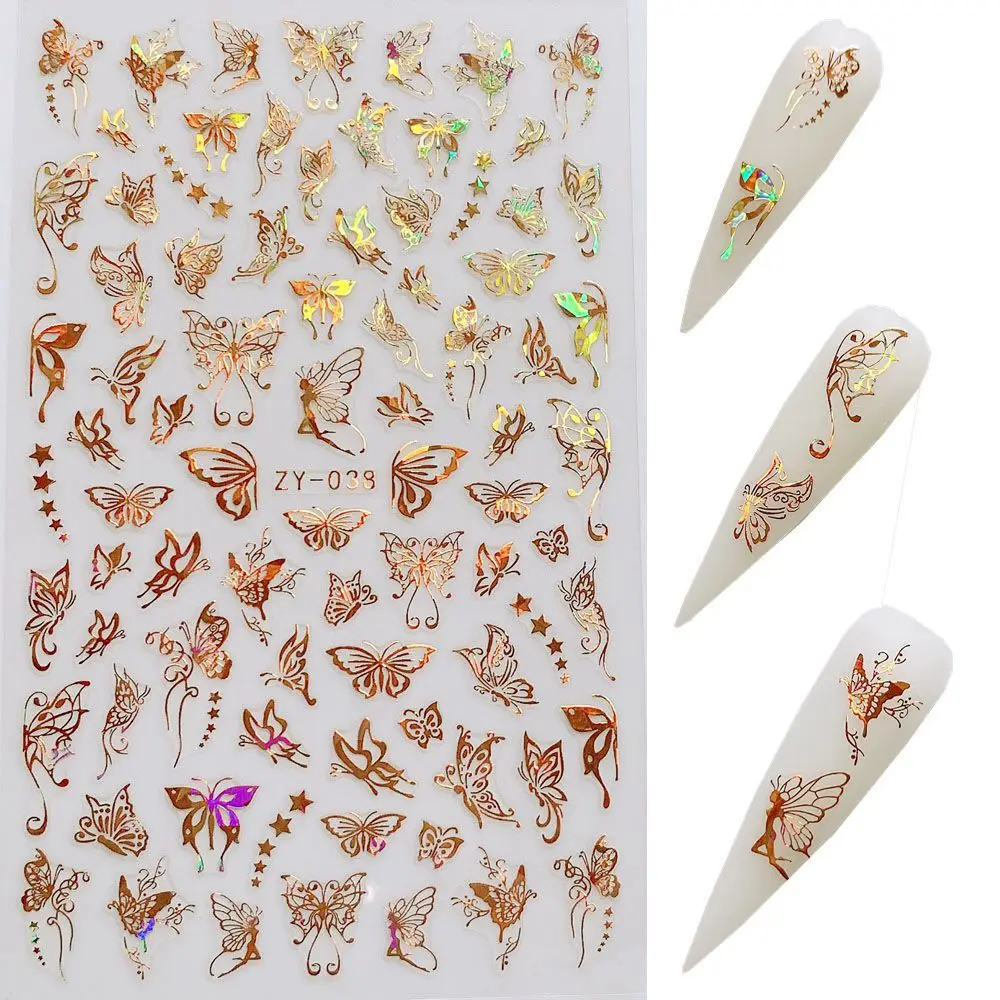 1 лист моделирование ультратонкие клейкие бабочки наклейки для ногтей лазерные золотые серебряные 3D наклейки для самостоятельного украшения