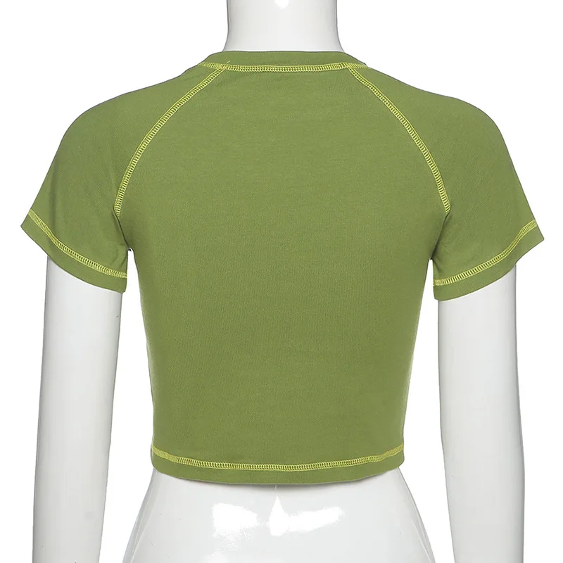 Зеленый укороченный топ с рисунком бабочек и надписей, Y2K, летние футболки в стиле гранж с круглым вырезом и коротким рукавом, сексуальные футболки с принтом