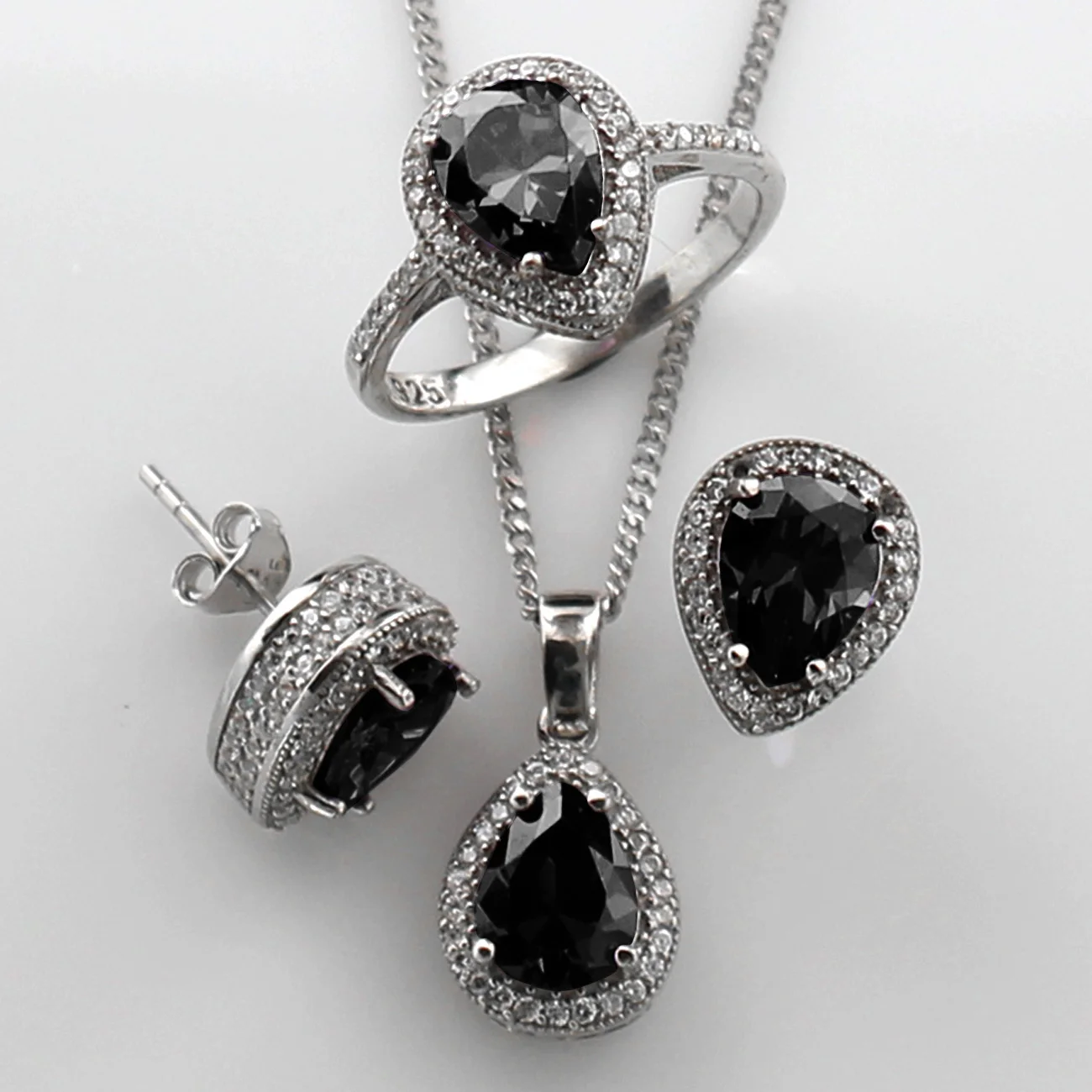Набор женских ювелирных изделий, кольцо и серьги, из серебра 925 пробы, с натуральным Цирконом