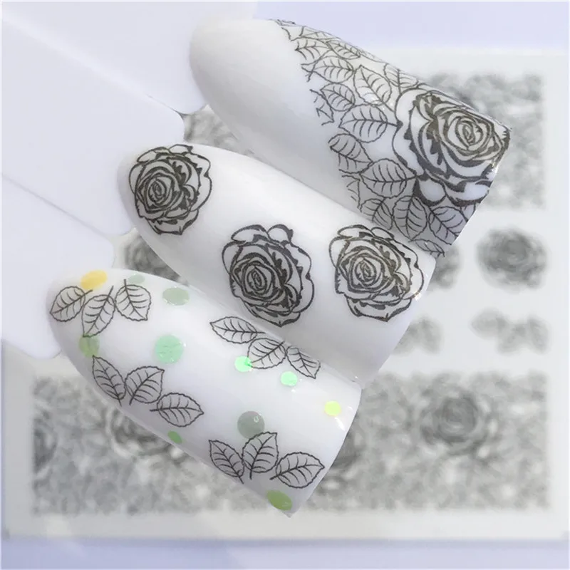1 лист Водные Наклейки для ногтей черные кружевные цветочные животн...