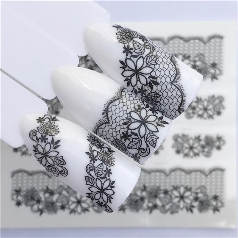 1 лист Водные Наклейки для ногтей черные кружевные цветочные животные узор переводная наклейка для ногтей слайдер DIY наклейки для ногтей художественное украшение