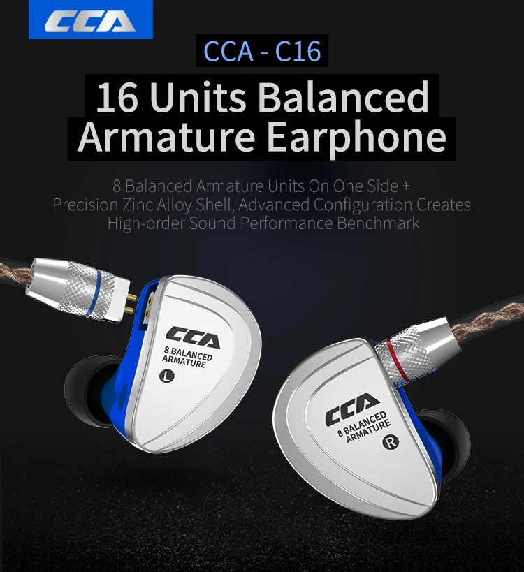 Новые наушники CCA C16 8BA, металлические наушники, HIFI гарнитура,...