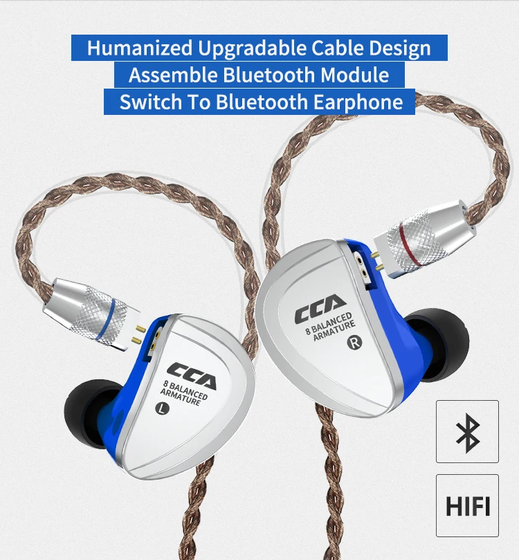 Металлическая аурикулярная Hi-Fi аурикулярная установка Nuevo CCA C16 8BA с кабелем, разделенным на 2 контакта c1