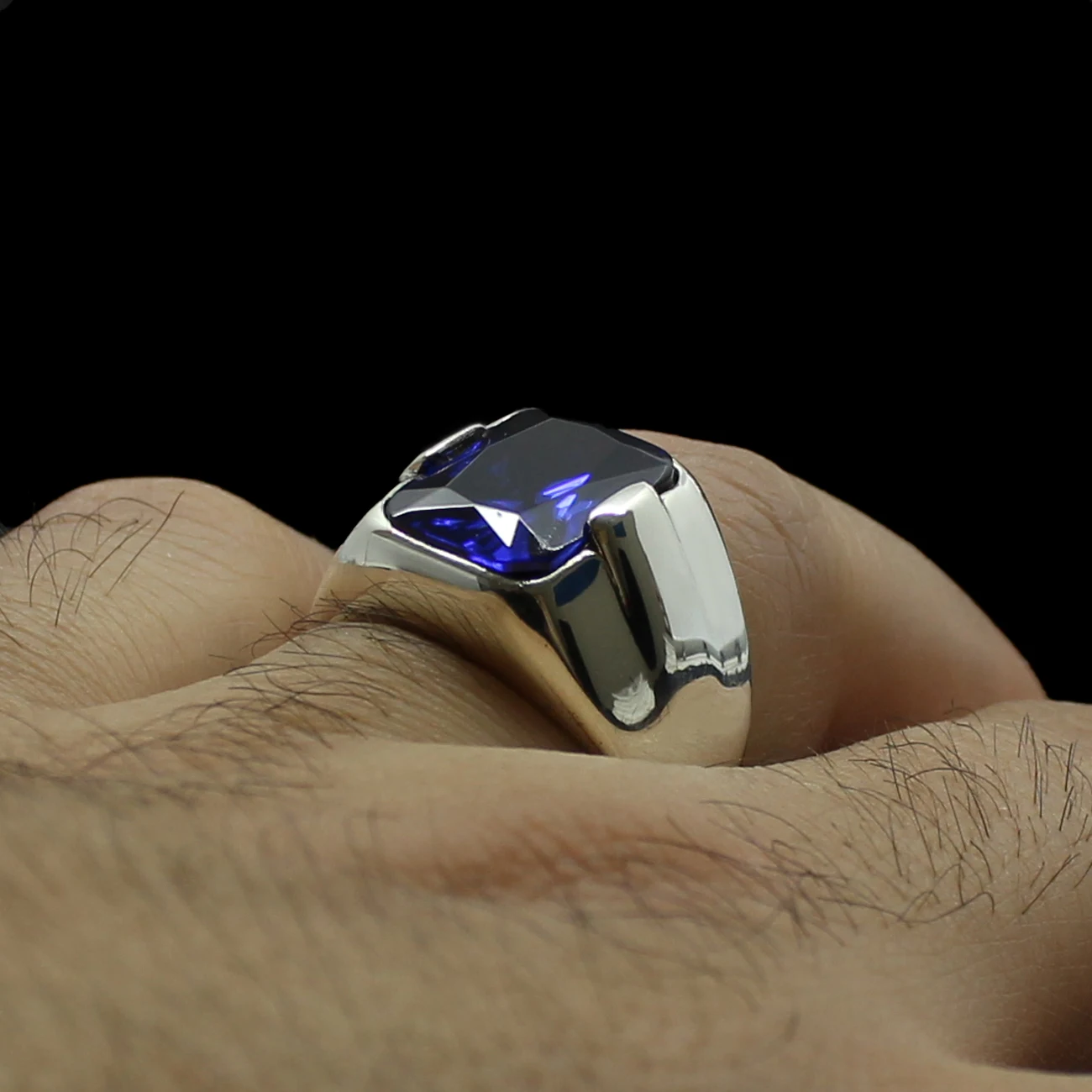 Pukka реальные 925 стерлингового серебра Природный синий камень циркон кольцо для мужчин агат ювелирные изделия из оникса модные Подарочный винтажный аксессуар весь размерный ряд