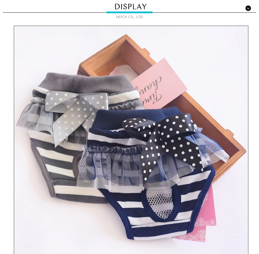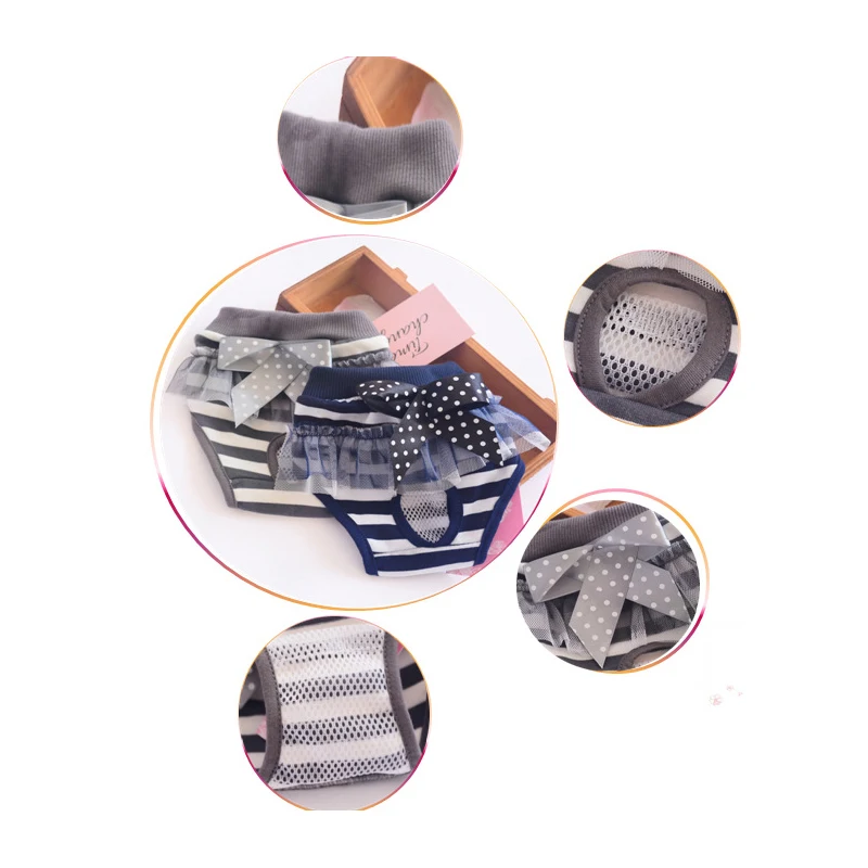 Гигиенические физиологические штаны для собак, хлопковые полосатые моющиеся короткие трусики для домашних животных с кружевным бантом, трусы для менструации щенка