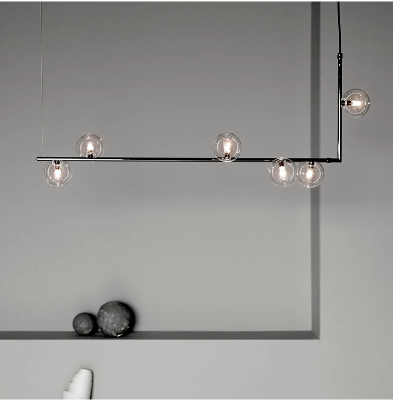 Скандинавская простая Люстра для столовой, светодиодный подвесной светильник со стеклянными шариками для ресторана, бара, кофе, длинная офисная лампа черного и золотого цвета
