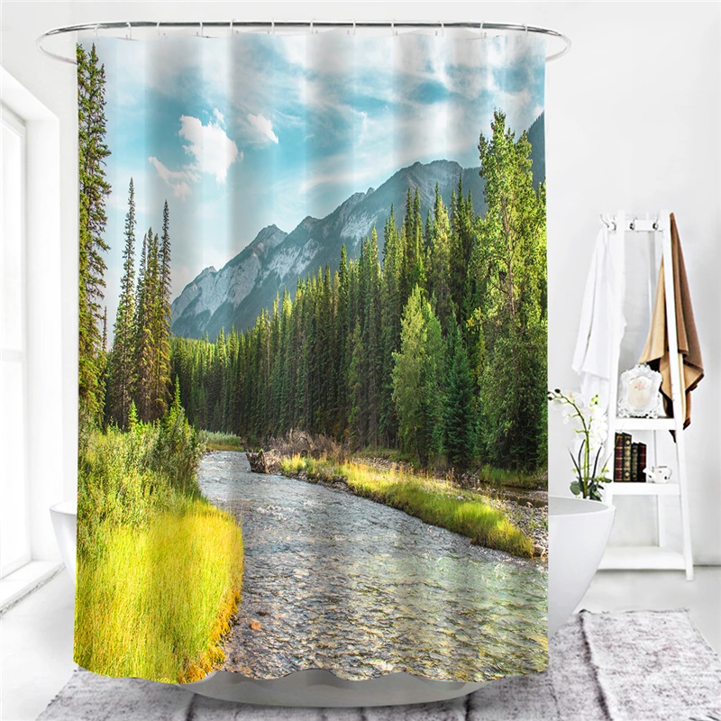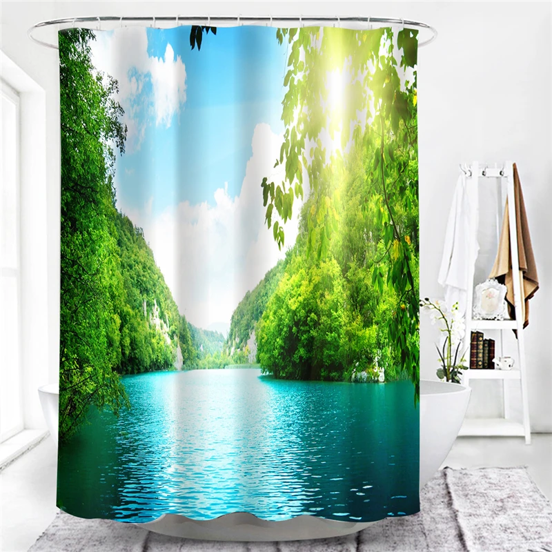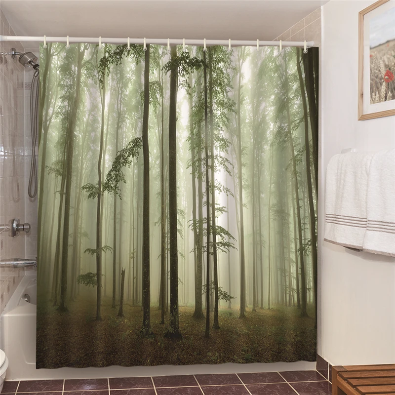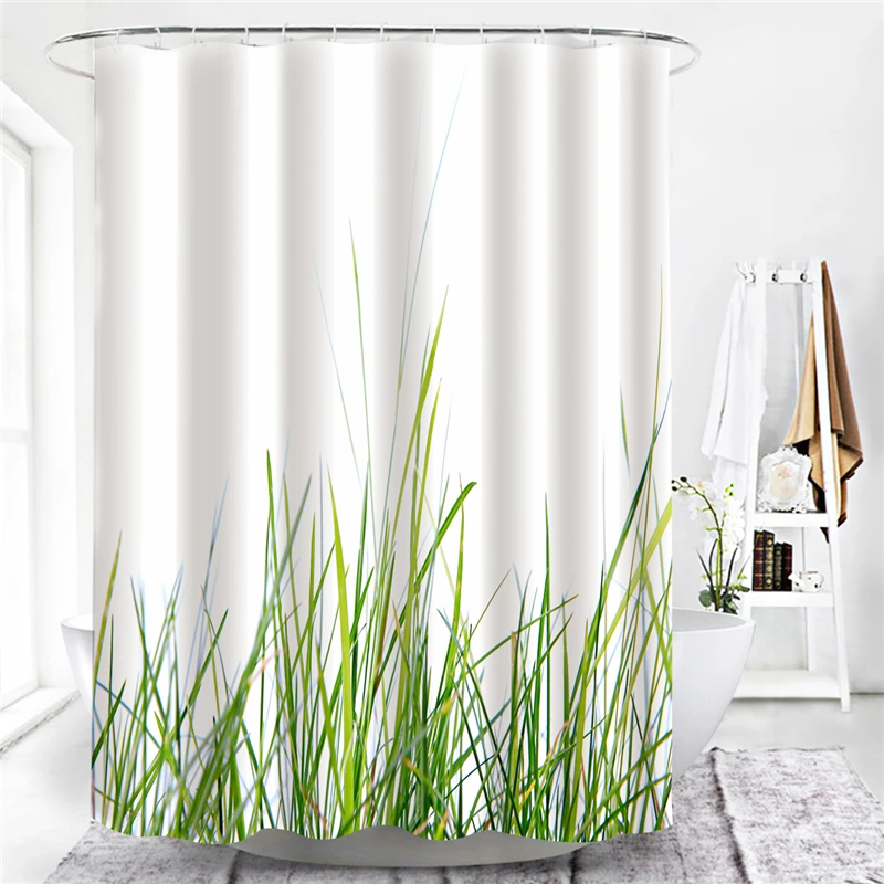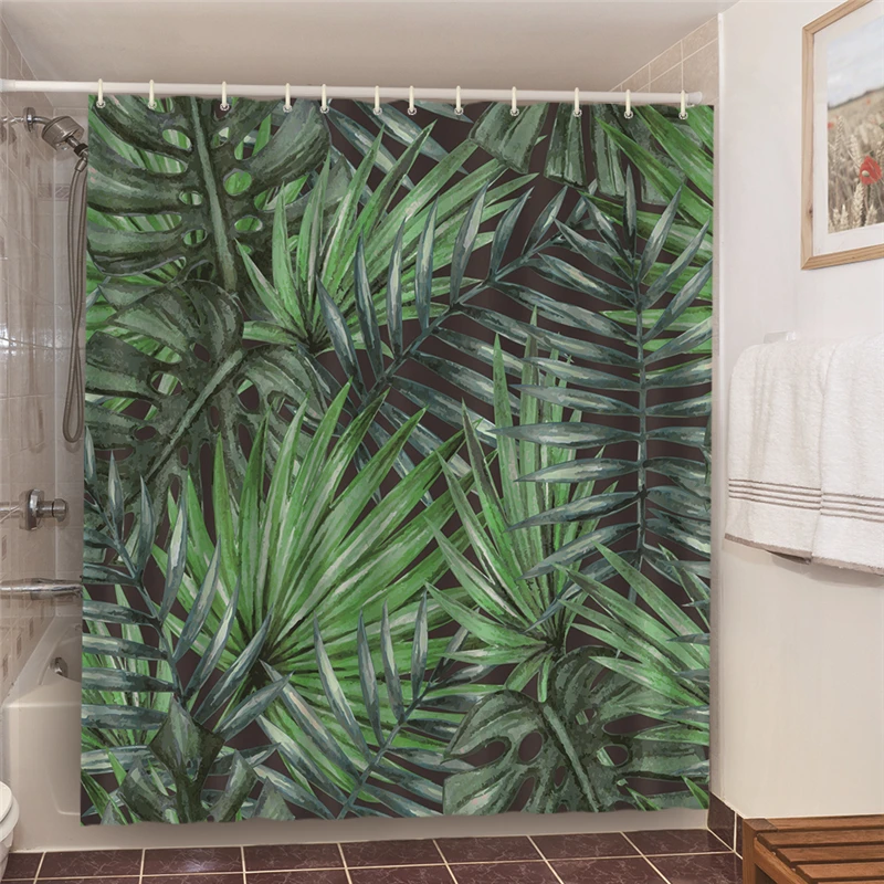 Шторы с зелеными листьями для ванной комнаты, водонепроницаемые и занавески для душа с защитой от плесени шт. в комплекте, 12 крючков